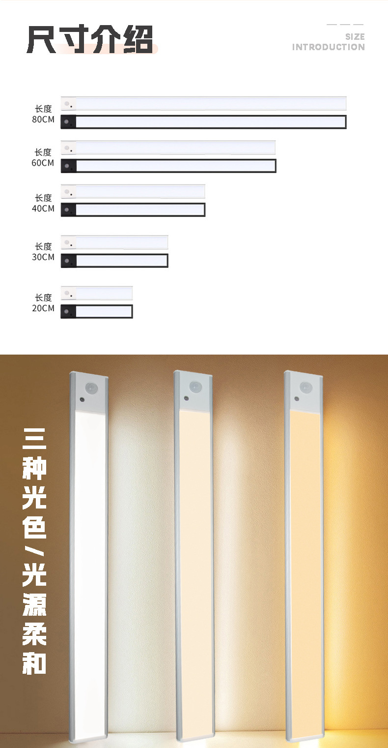 초박형 LED 지능형 인체 센서 램프 자기 설치 충전식 야간 조명 옷장 벽 캐비닛 캐비닛 라이트 스트립 라이트 스트립