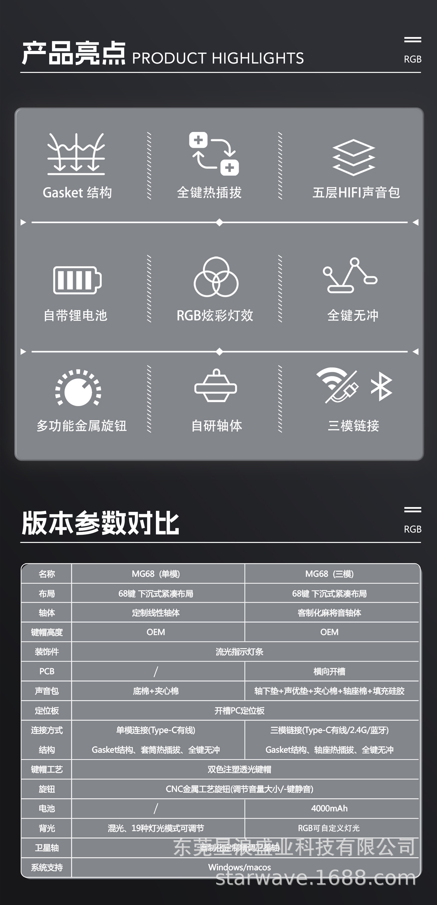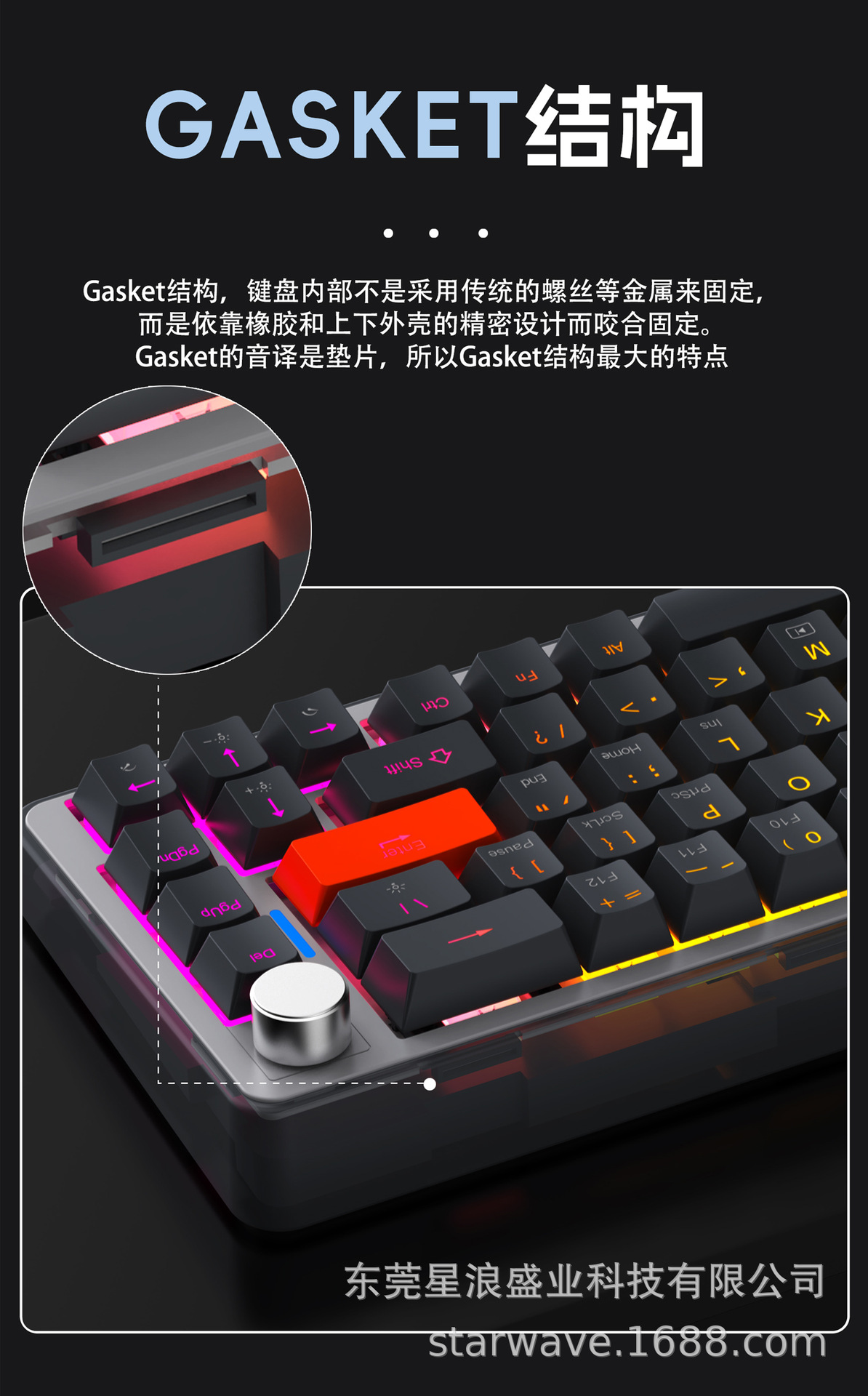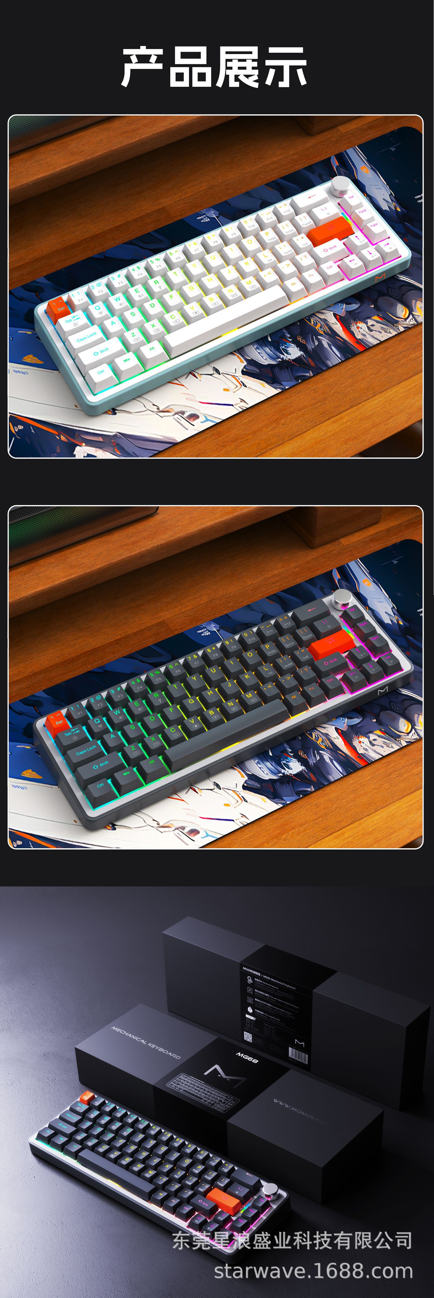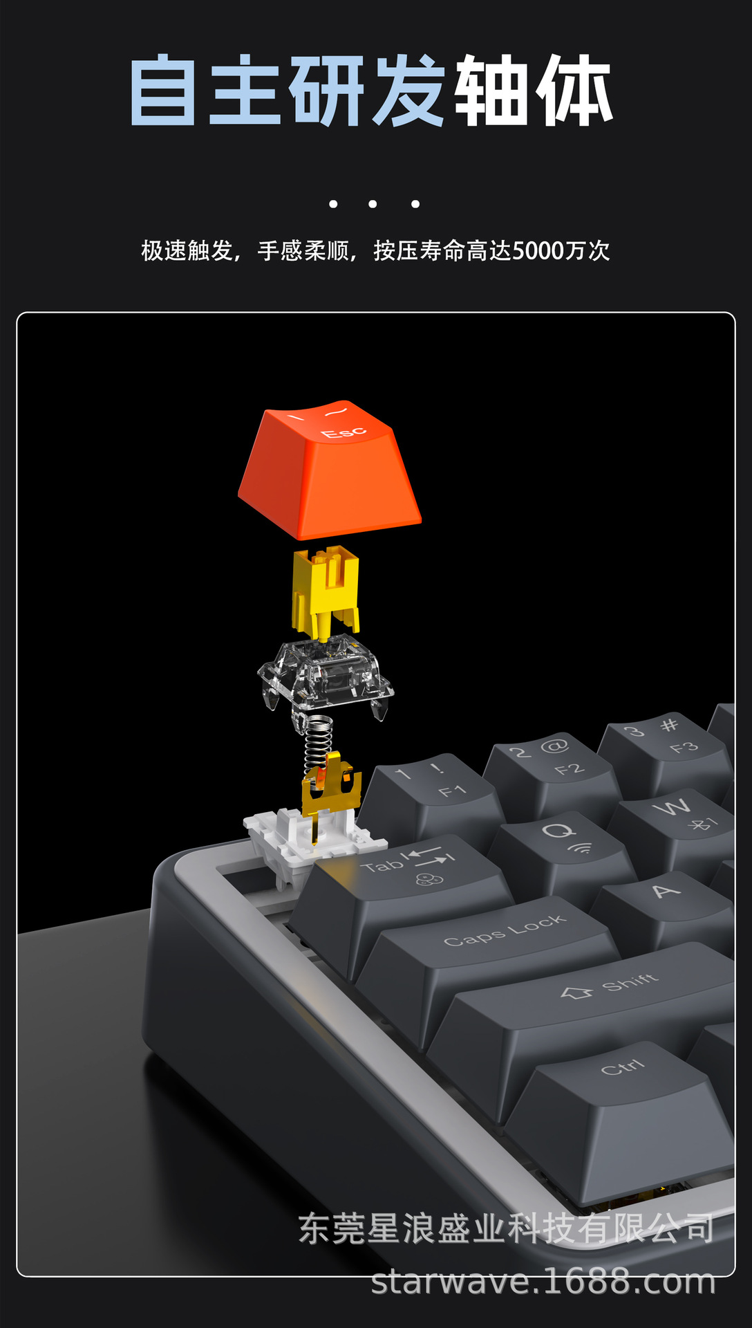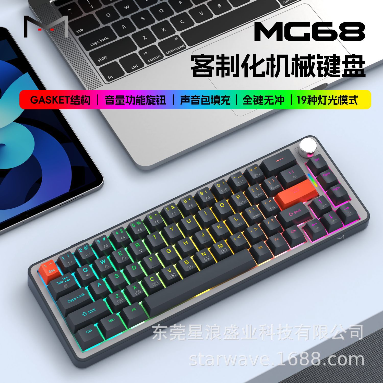 68 키 실제 기계식 빨간색 축 가스켓 구조 반투명 게임 e-스포츠 사무실 국경 간 전자 상거래 도매 기계식 키보드