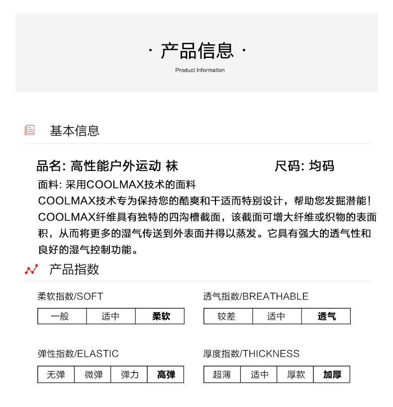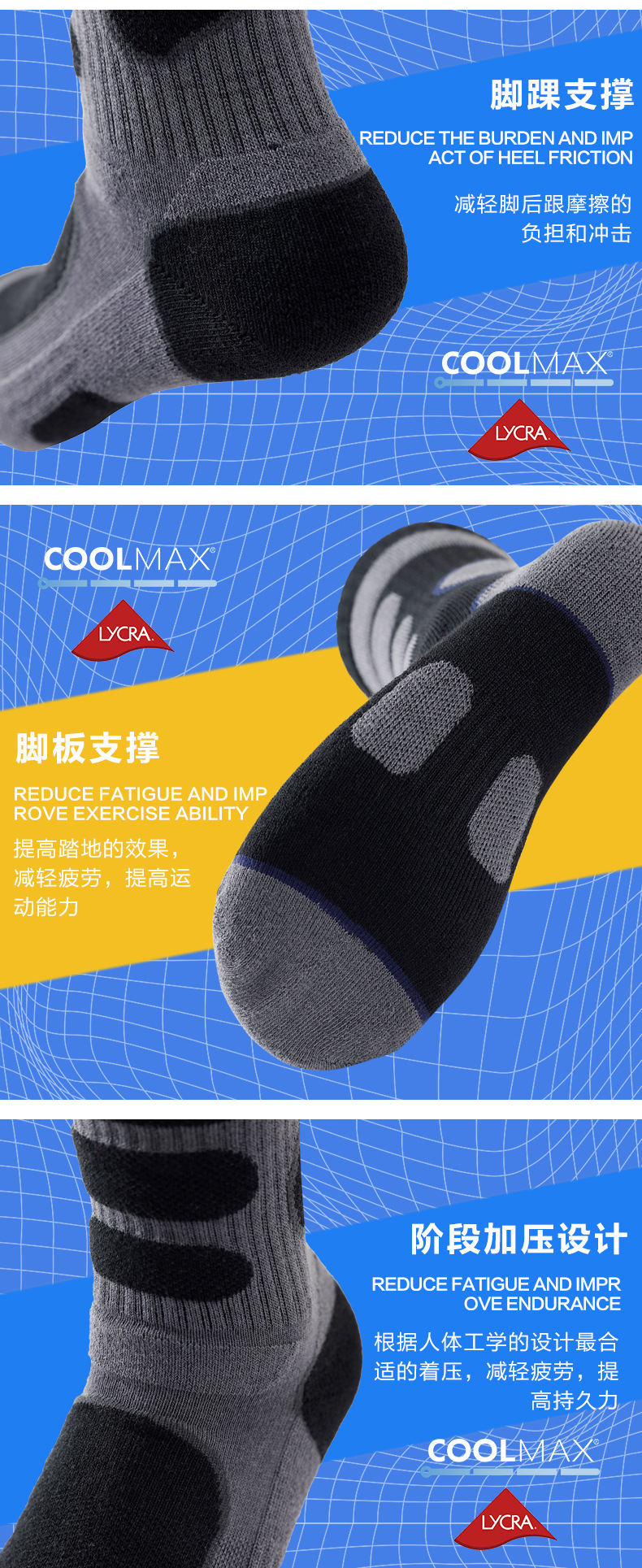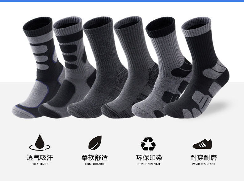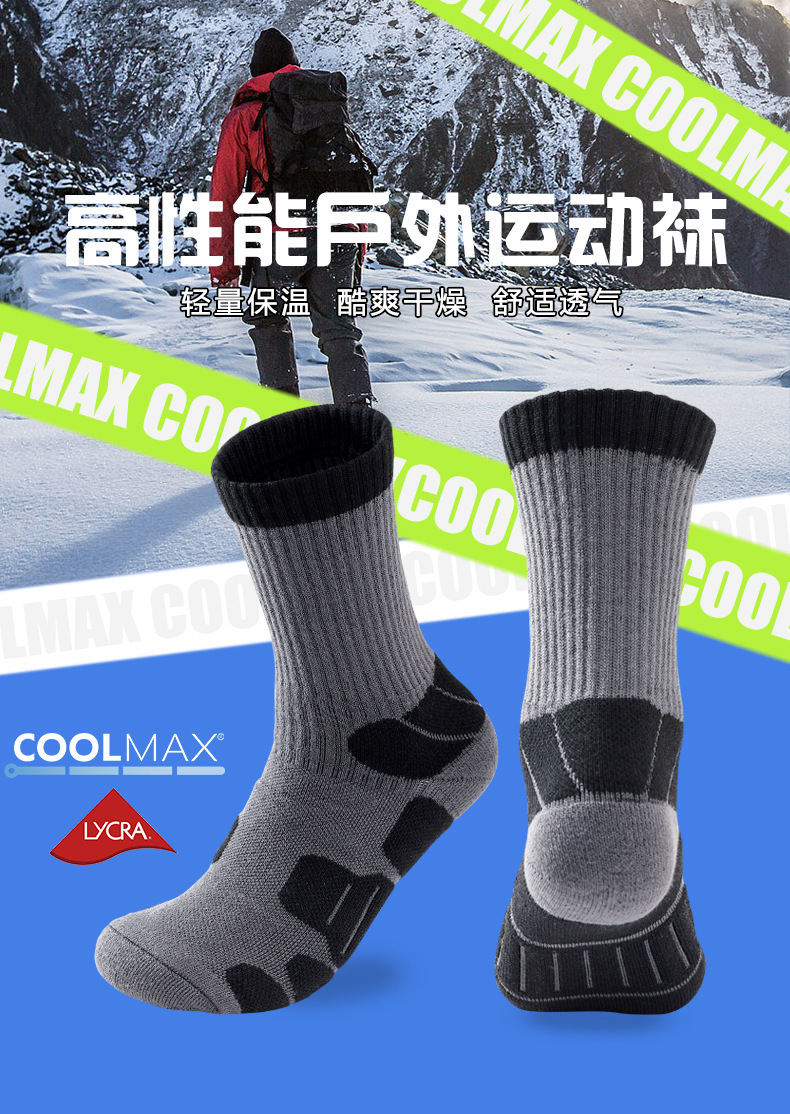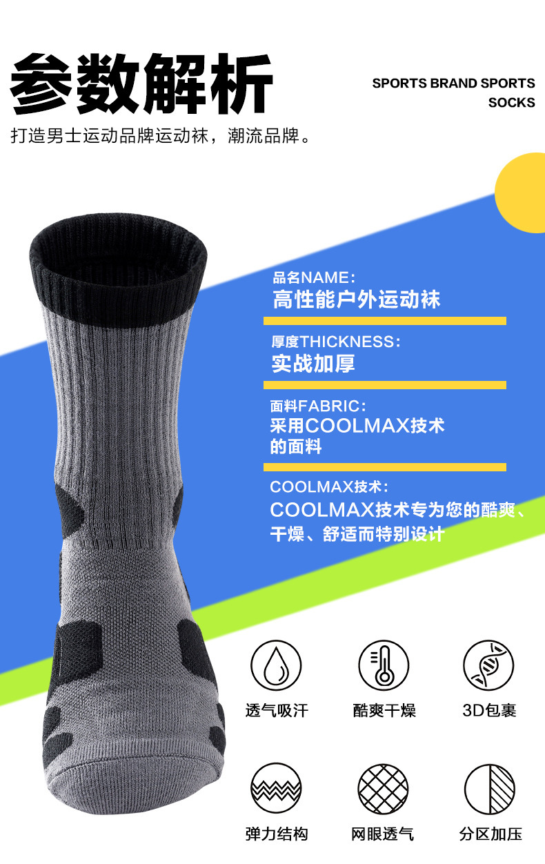 Honghao COOLMAX 양말, 시원한 야외 스포츠 양말, 통기성이 있고 두꺼운 등산 양말, 건조한 크로스 컨트리 하이킹 양말