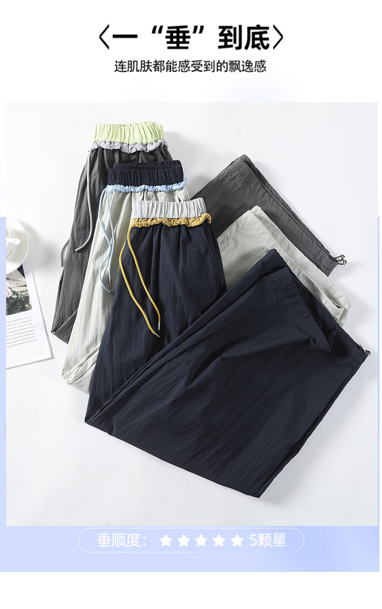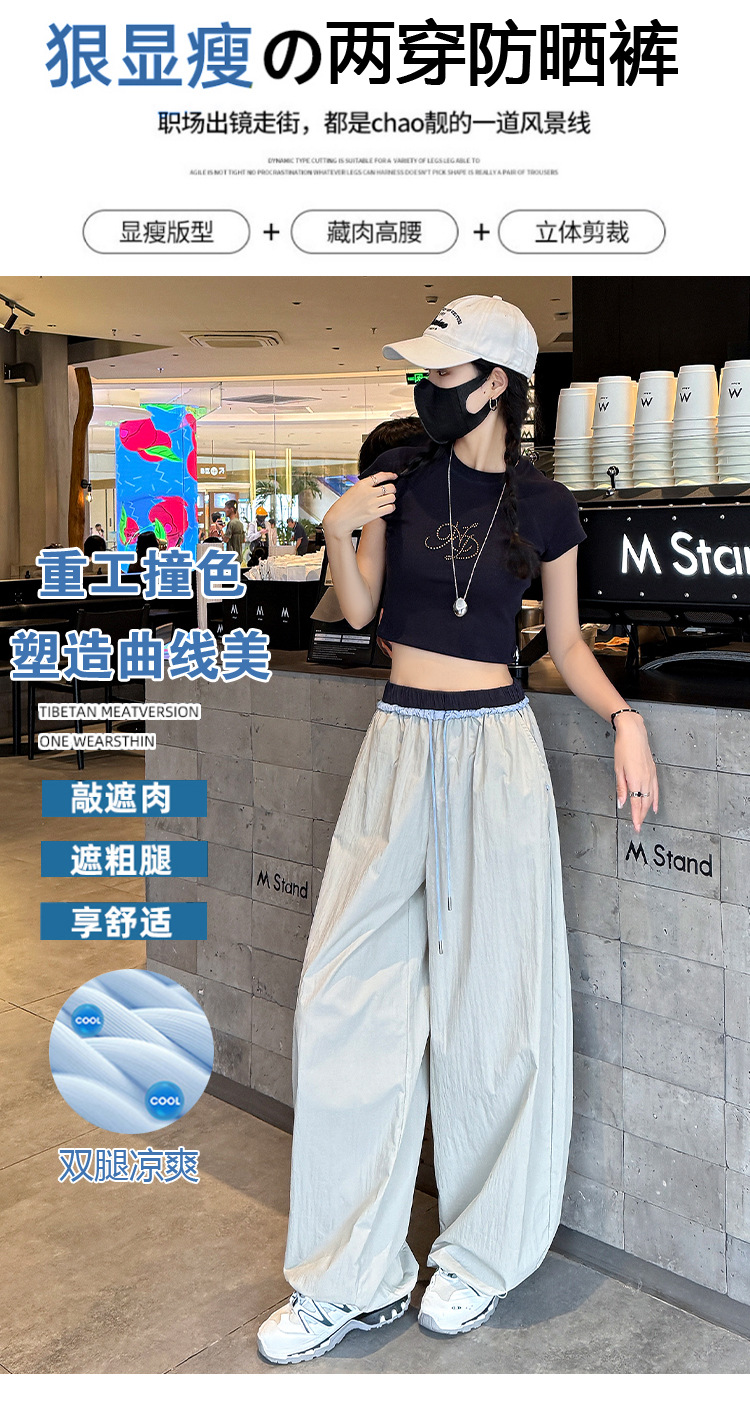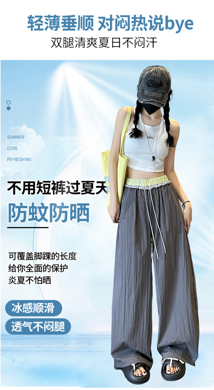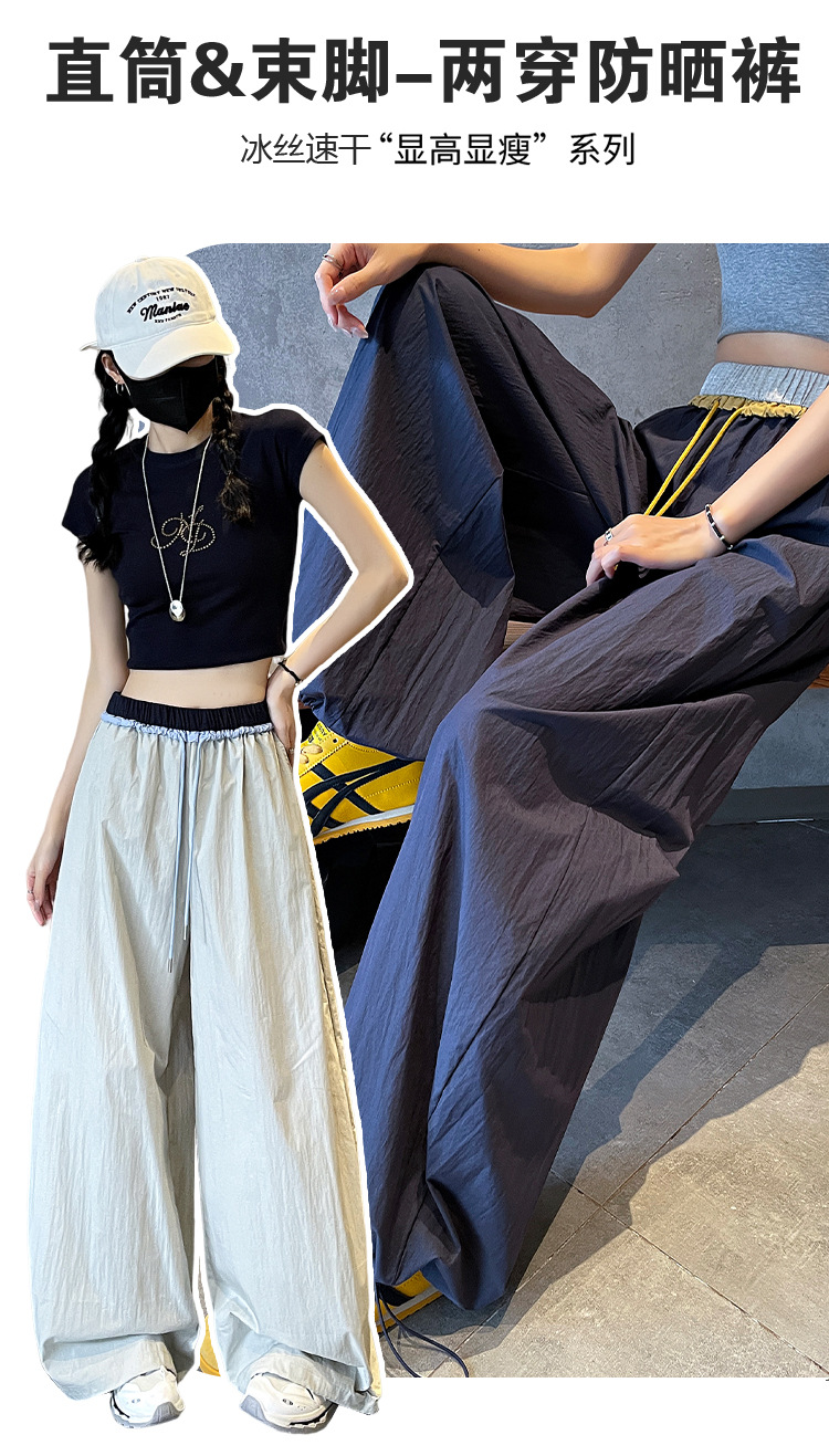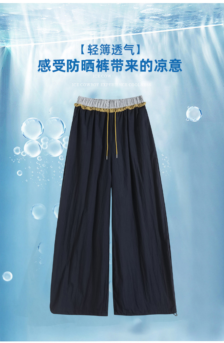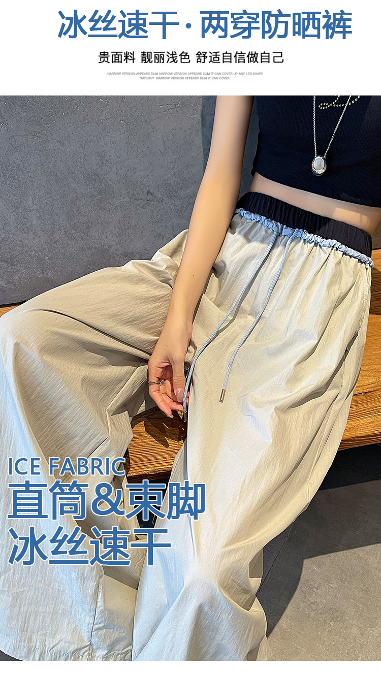 여성을위한 대비 색상 디자인 야외 등산 파라슈티스트 바지 여름 얇은 속건 스포츠 바지 태양 보호 얼음 실크 와이드 레그 바지스토어 가기