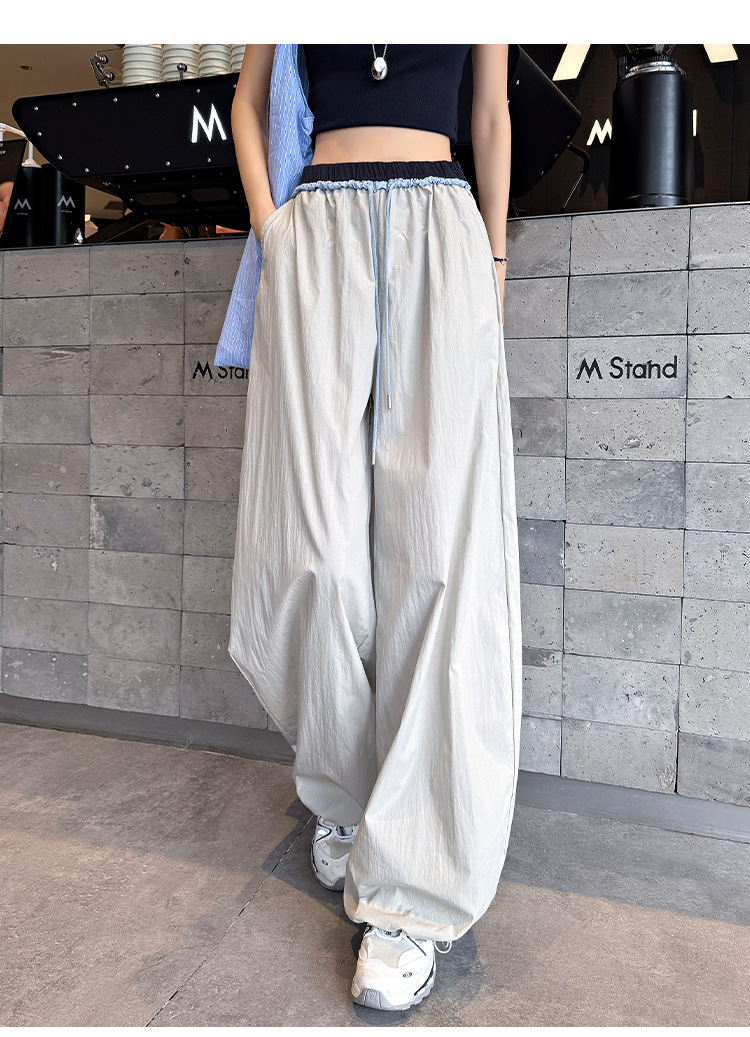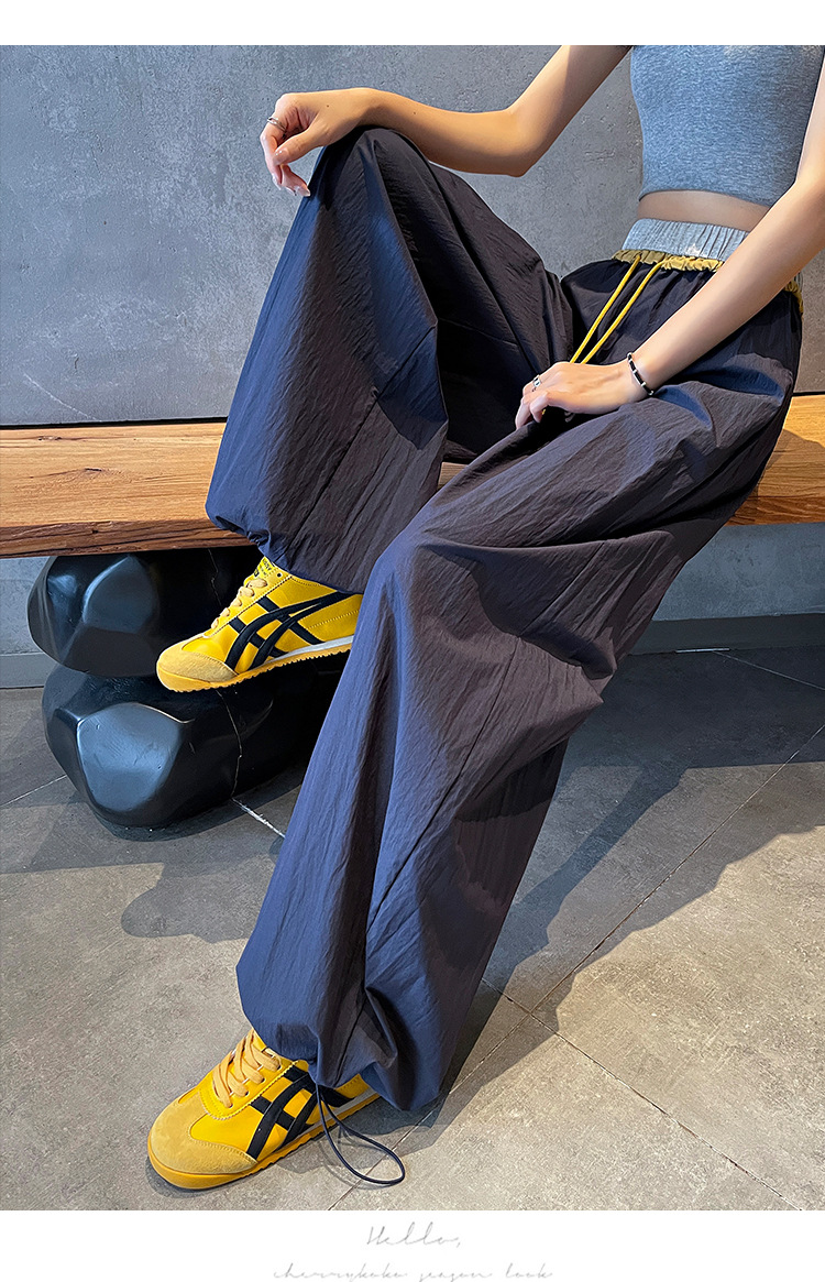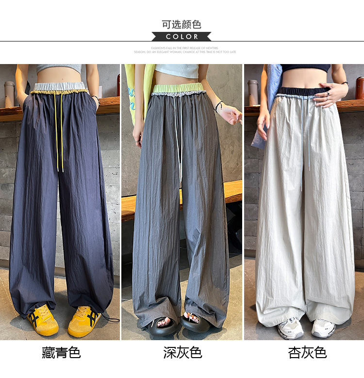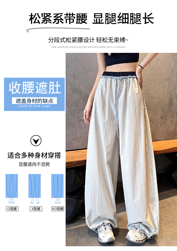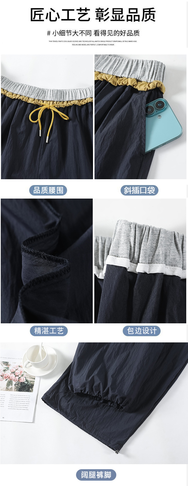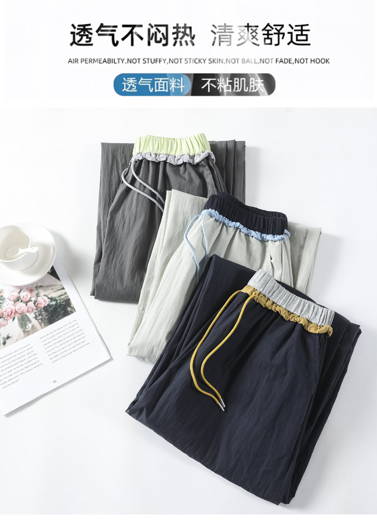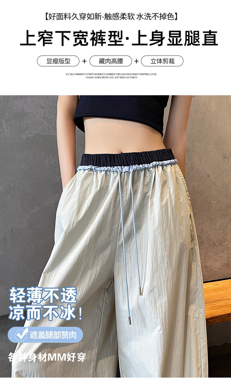 여성을위한 대비 색상 디자인 야외 등산 파라슈티스트 바지 여름 얇은 속건 스포츠 바지 태양 보호 얼음 실크 와이드 레그 바지스토어 가기