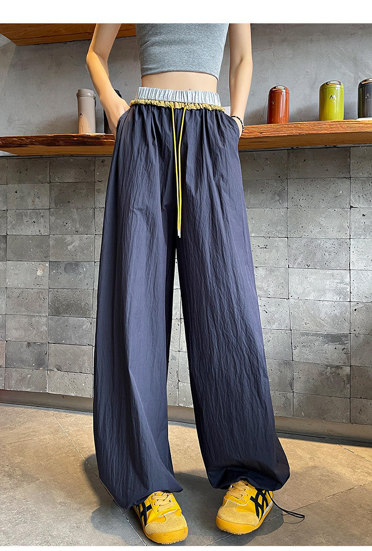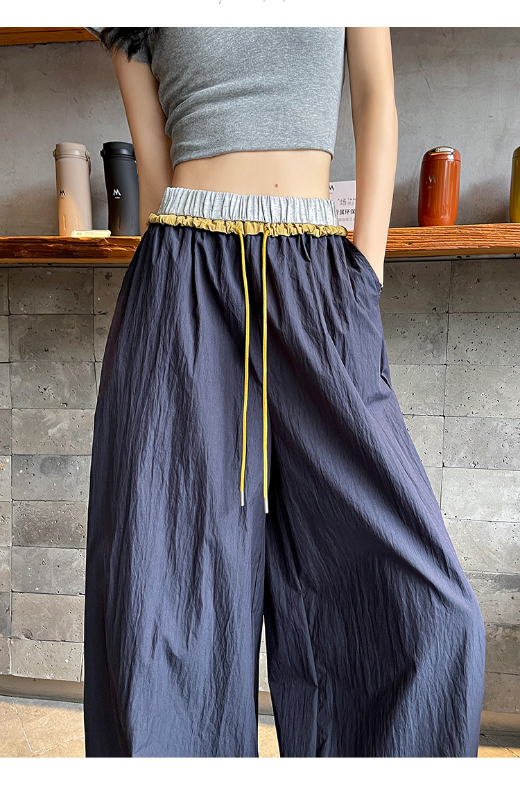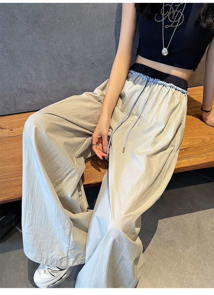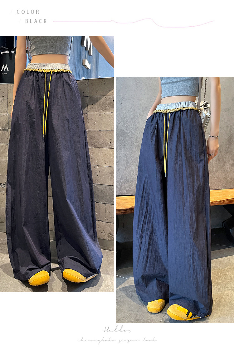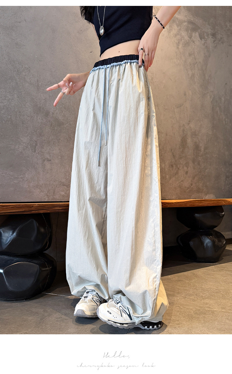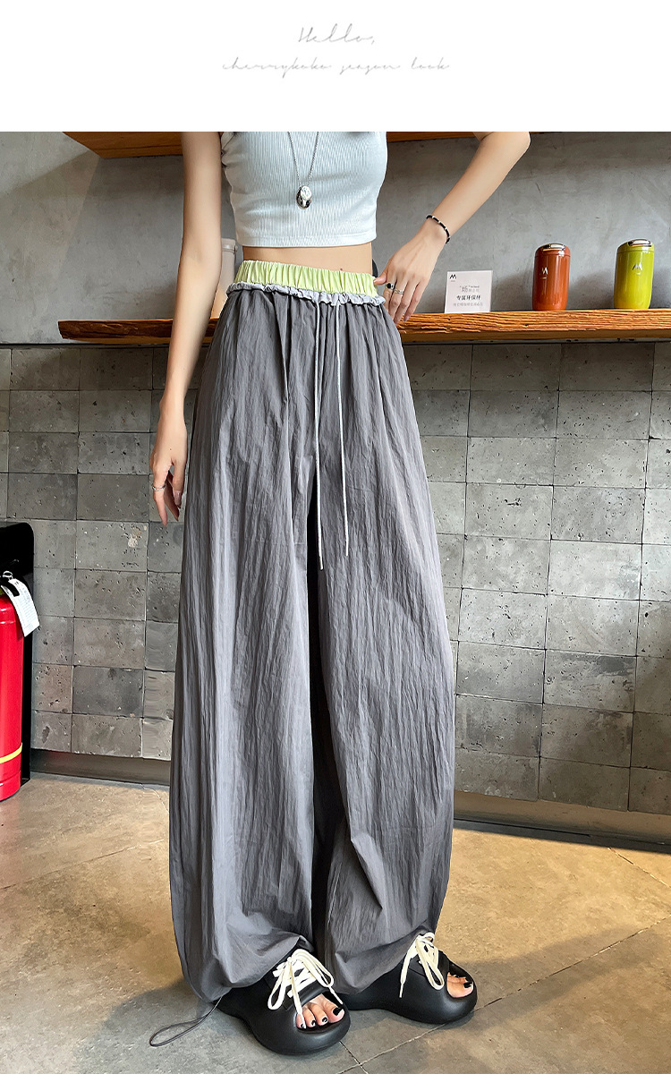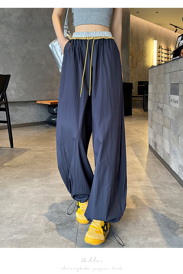 여성을위한 대비 색상 디자인 야외 등산 파라슈티스트 바지 여름 얇은 속건 스포츠 바지 태양 보호 얼음 실크 와이드 레그 바지스토어 가기