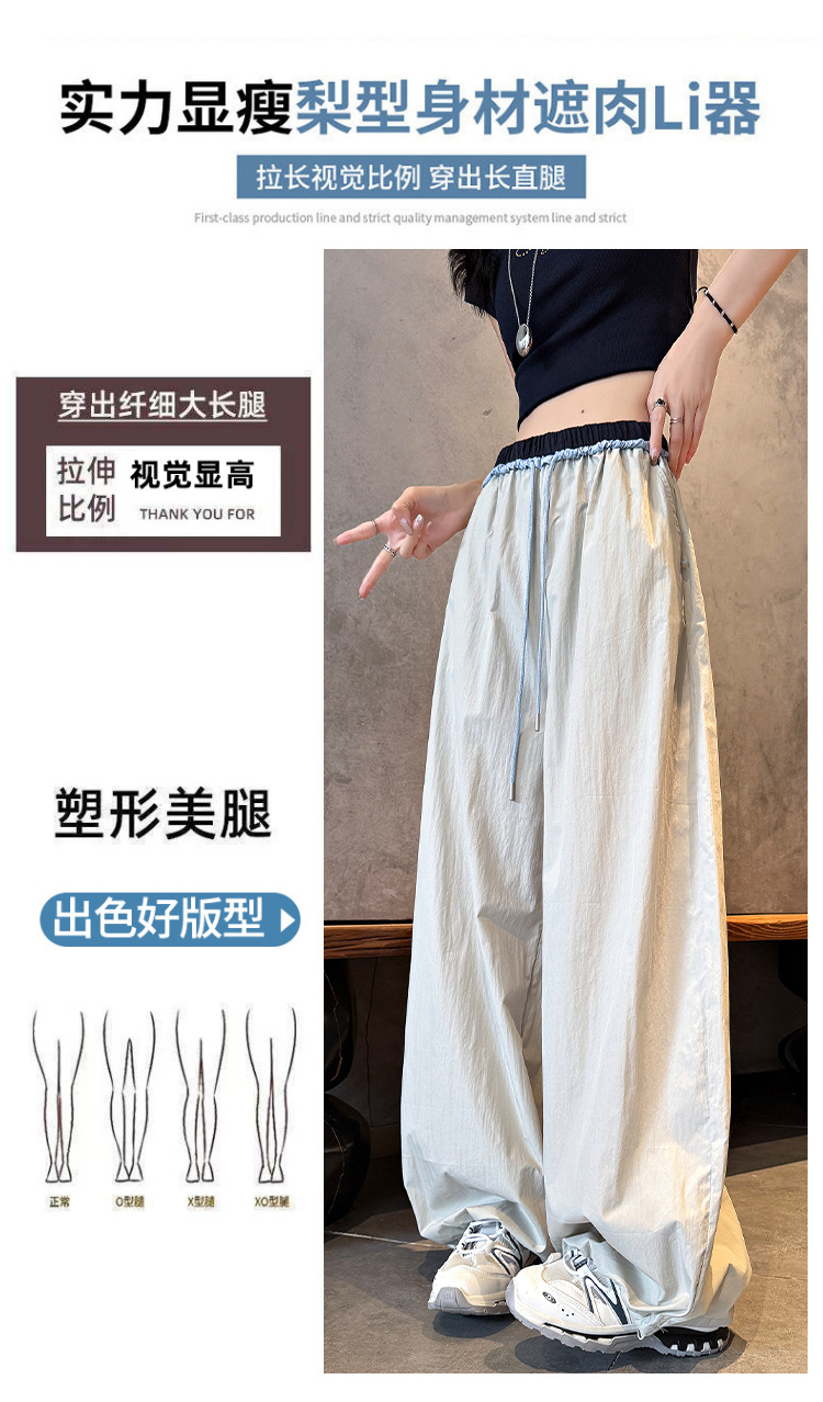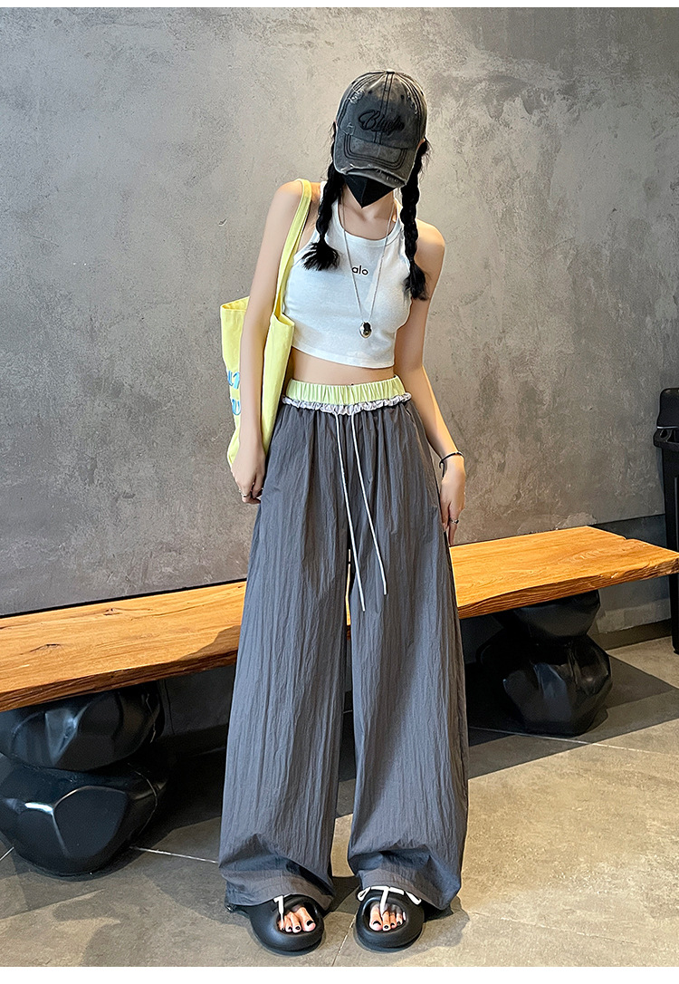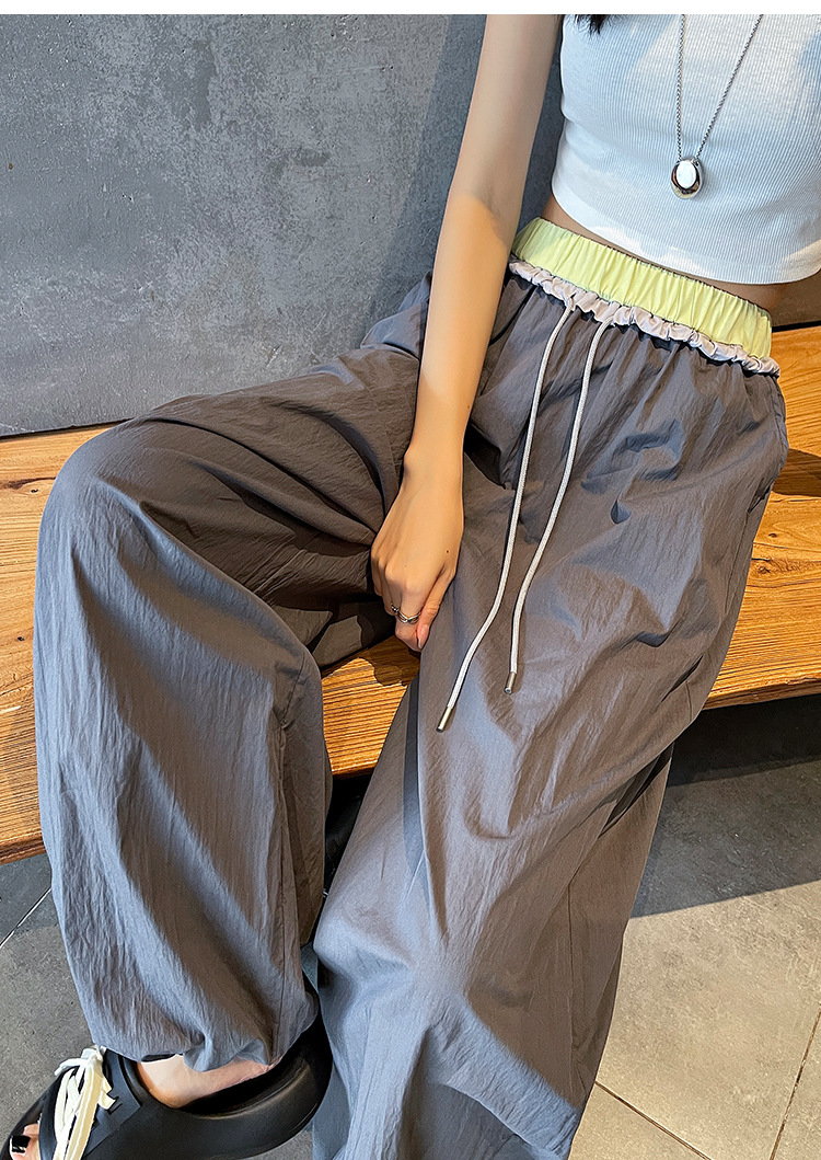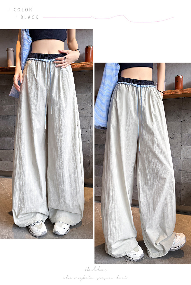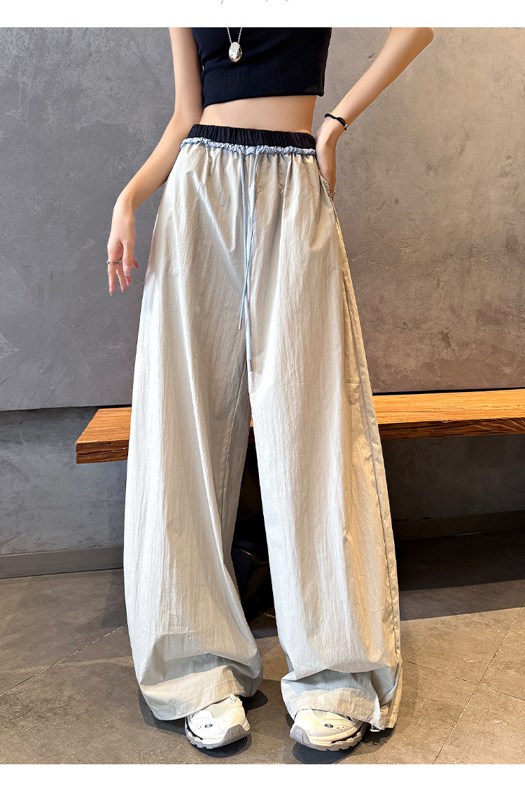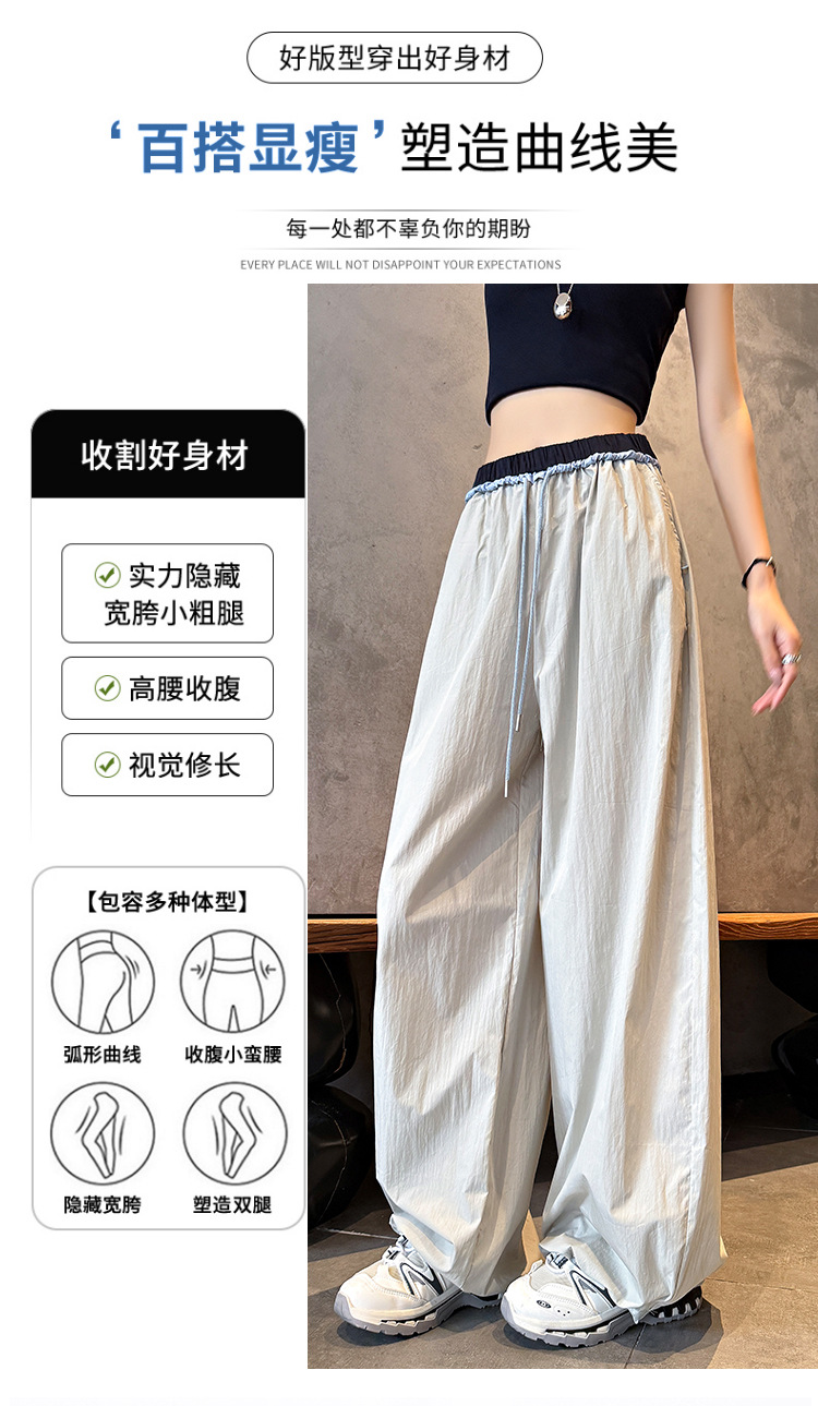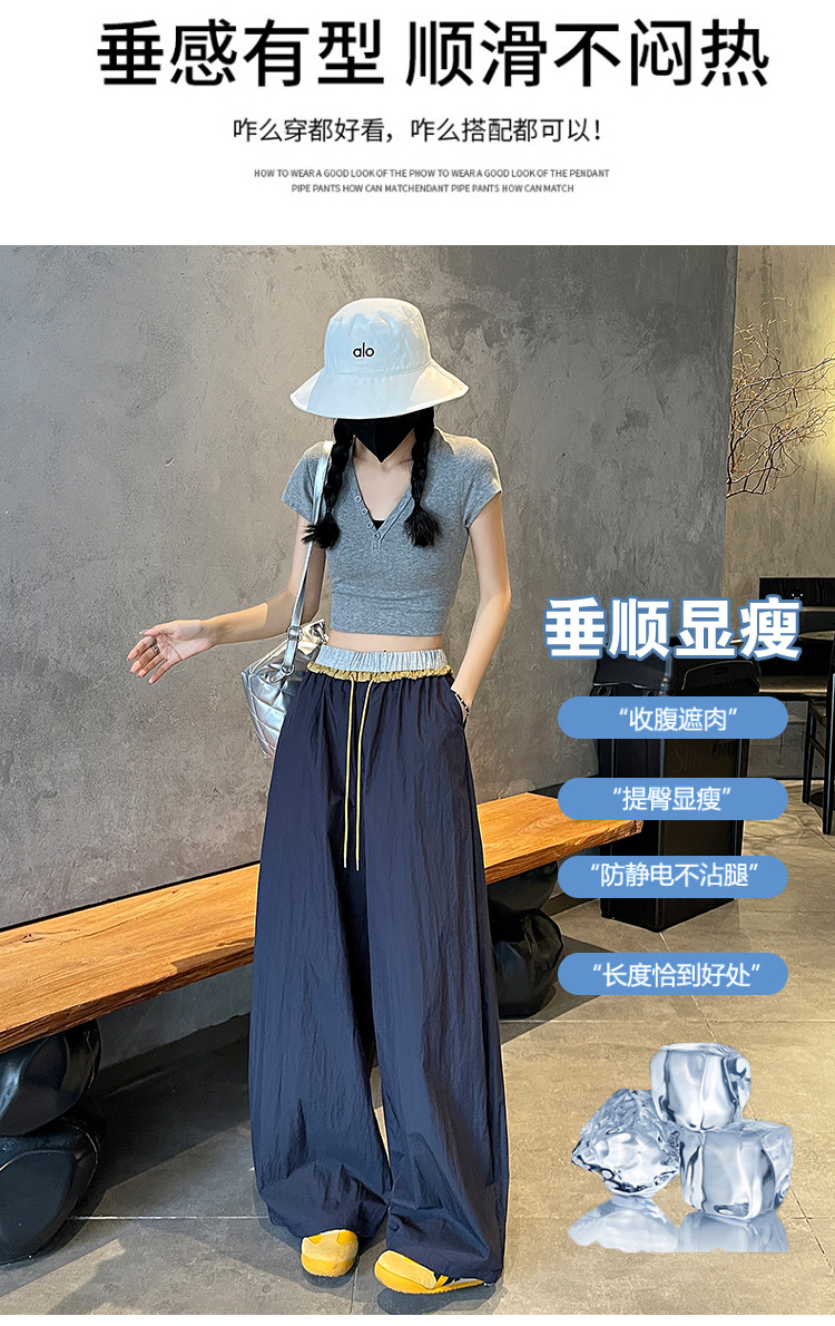 여성을위한 대비 색상 디자인 야외 등산 파라슈티스트 바지 여름 얇은 속건 스포츠 바지 태양 보호 얼음 실크 와이드 레그 바지스토어 가기