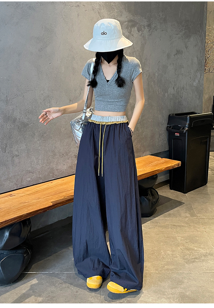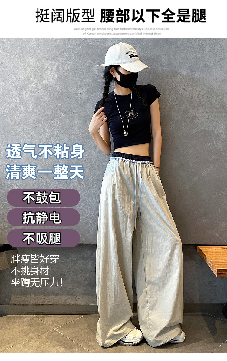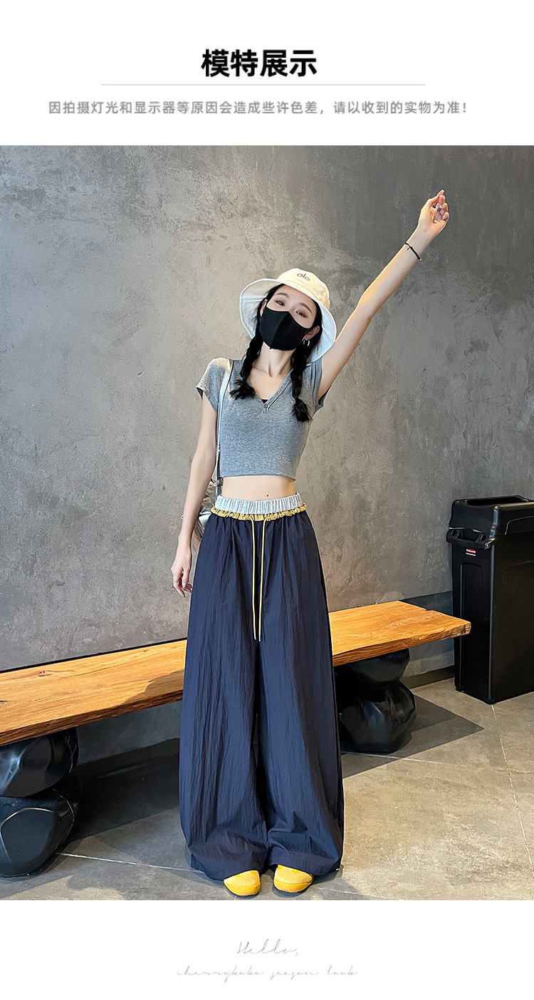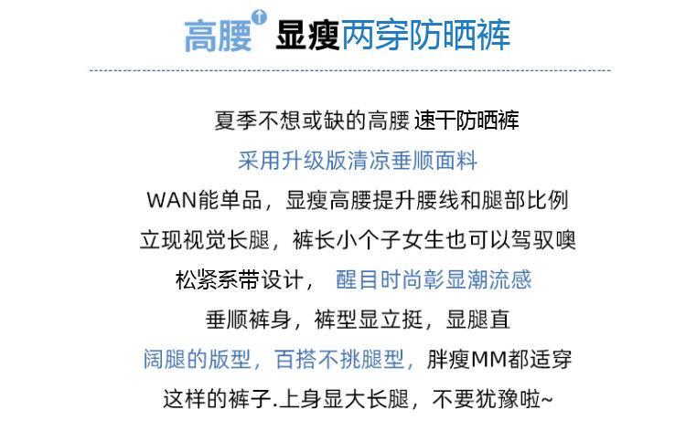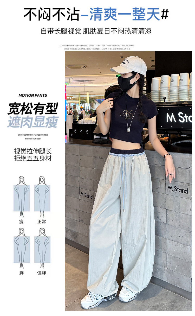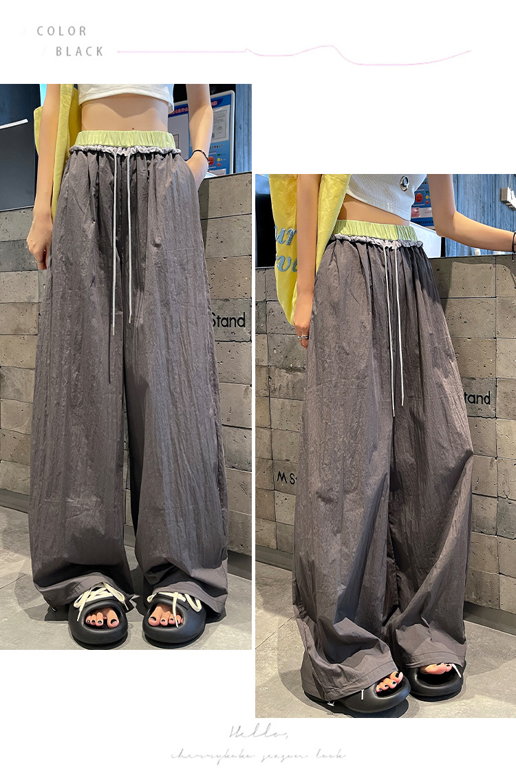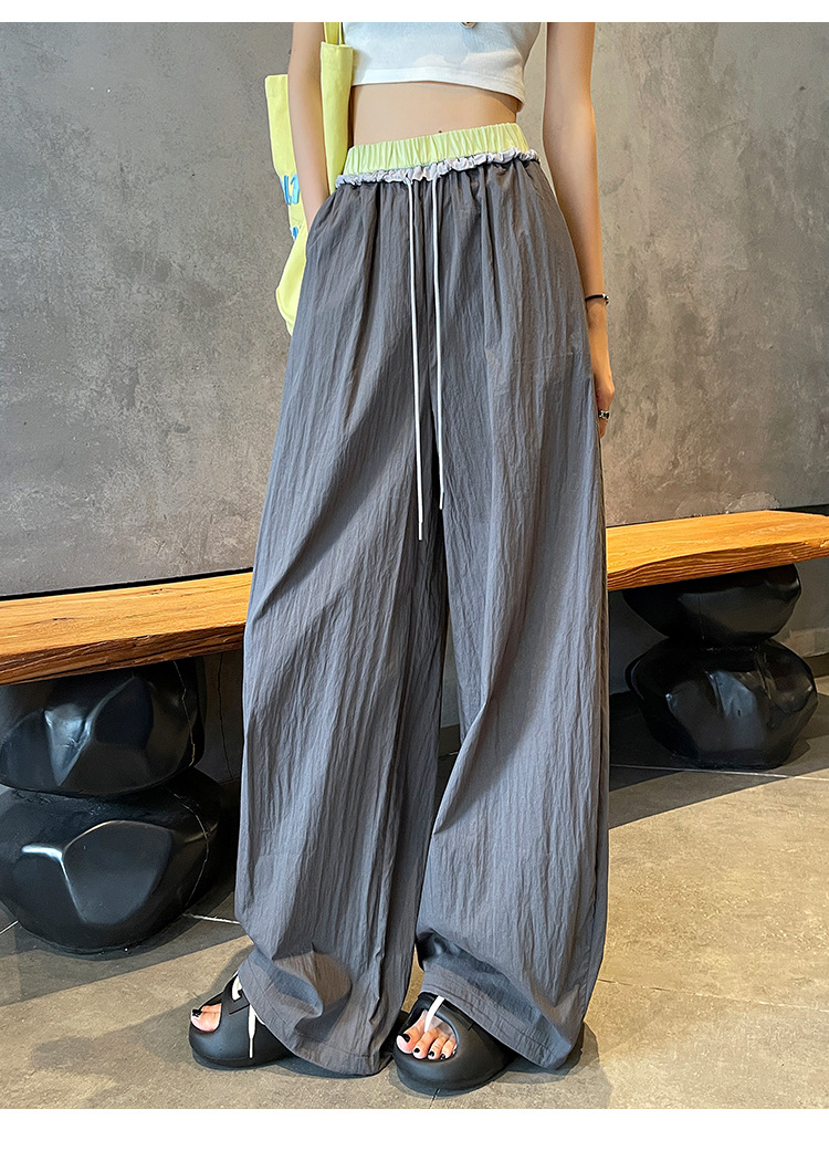여성을위한 대비 색상 디자인 야외 등산 파라슈티스트 바지 여름 얇은 속건 스포츠 바지 태양 보호 얼음 실크 와이드 레그 바지스토어 가기