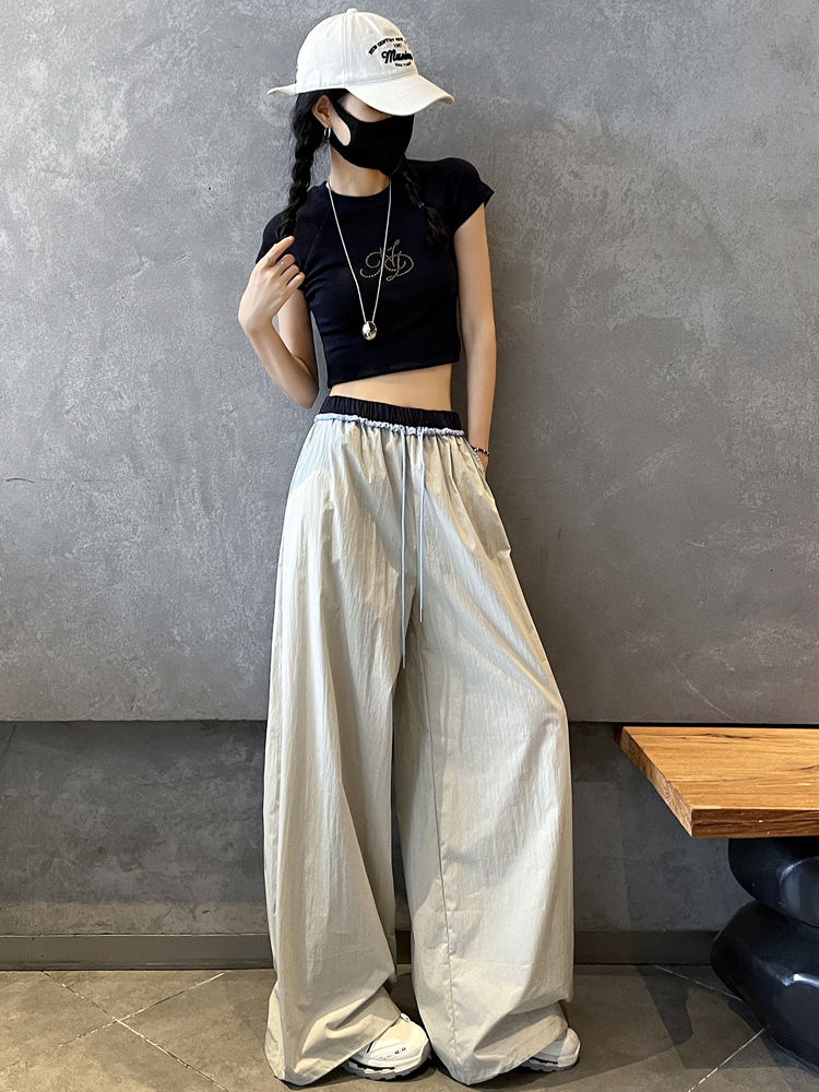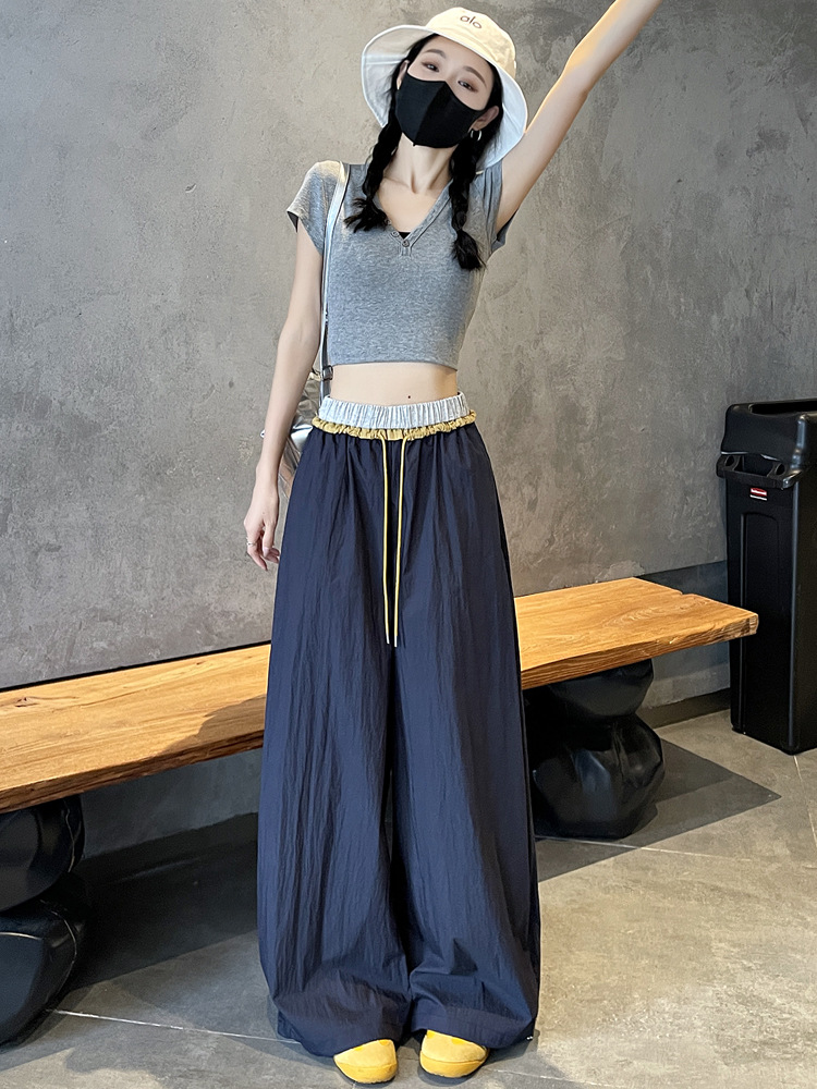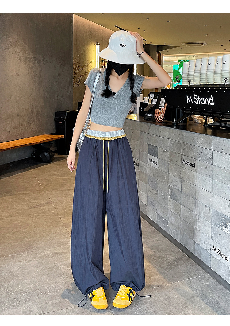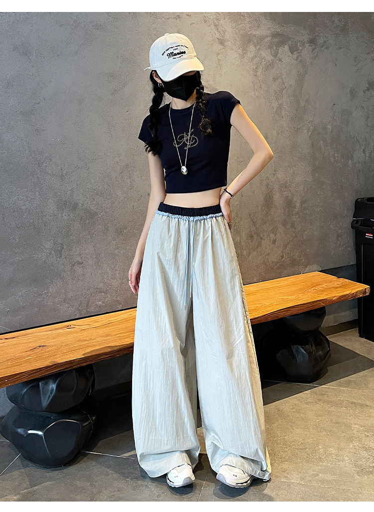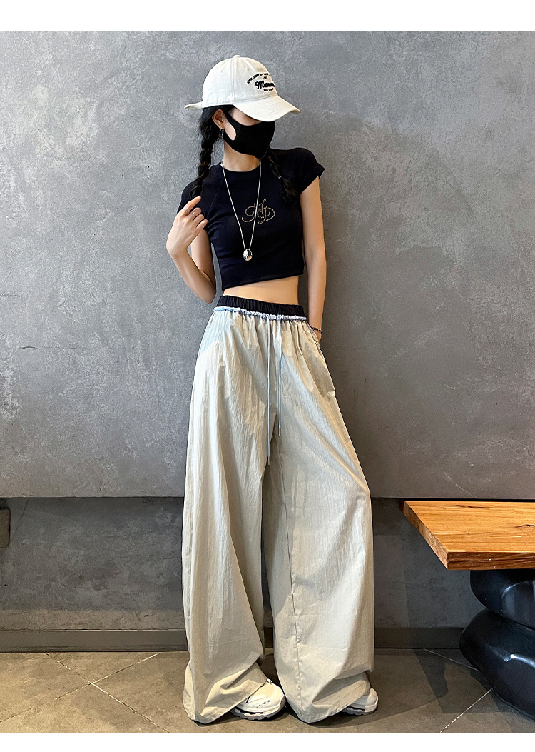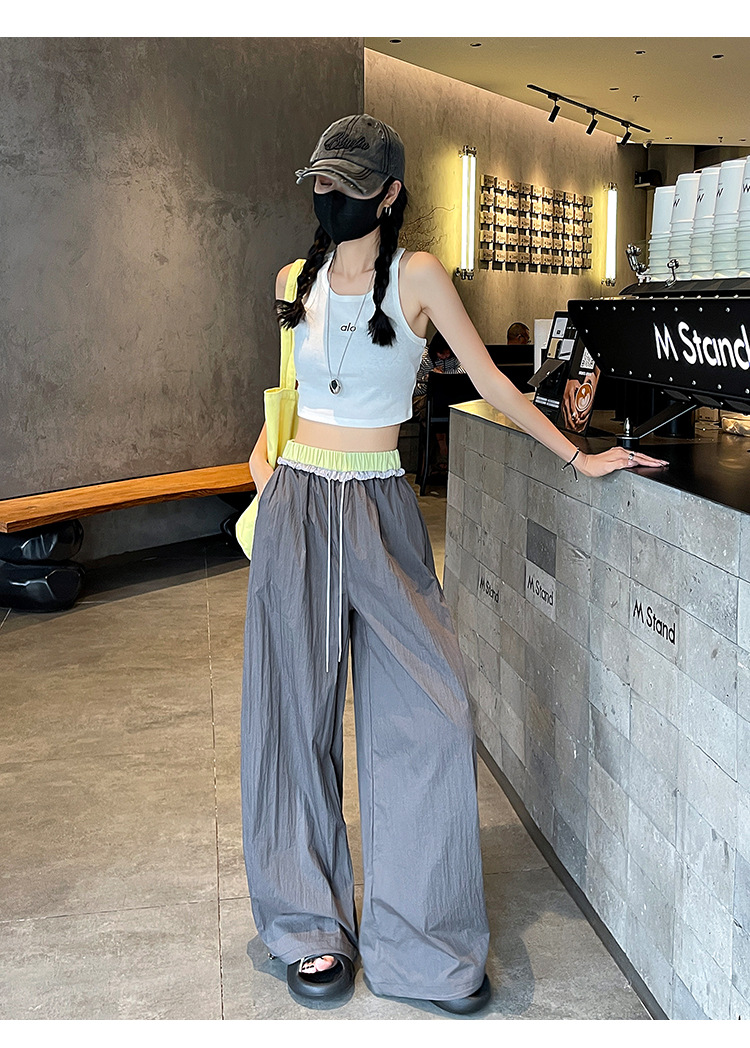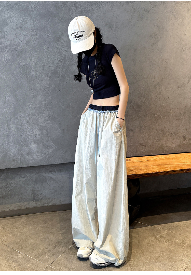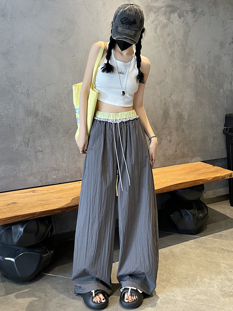 여성을위한 대비 색상 디자인 야외 등산 파라슈티스트 바지 여름 얇은 속건 스포츠 바지 태양 보호 얼음 실크 와이드 레그 바지스토어 가기