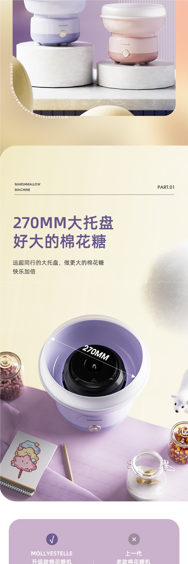 Mollyestelle 마시멜로 기계 어린이 가정용 소형 완전 자동 상업용 마시멜로 기계 수제스토어 가기