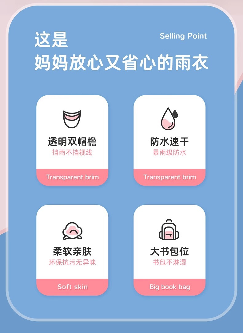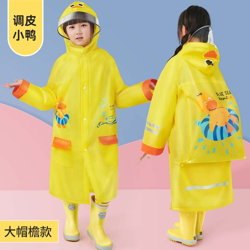 Paradise 두꺼운 어린이 비옷 전신 방수 만화 패션 초등학교 배낭 투명 챙 야외 판초