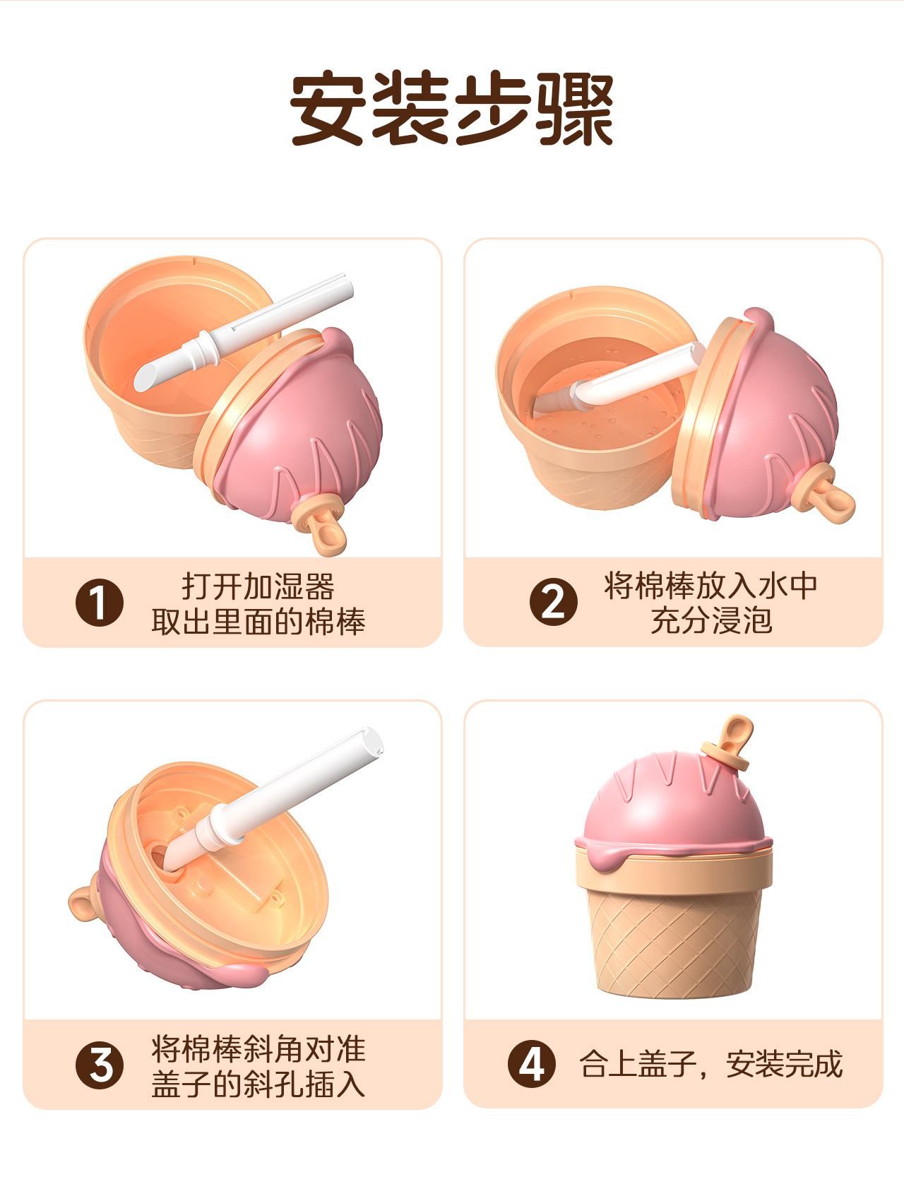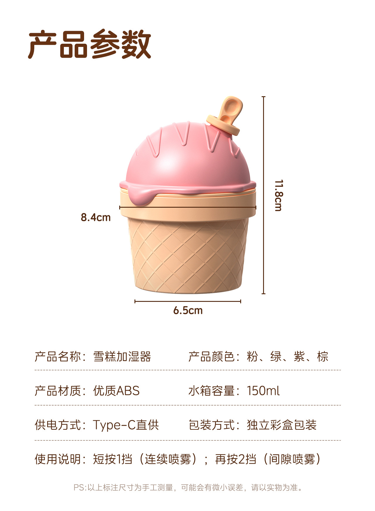 새로운 아이스크림 만화 가습기 USB 수분 공급 스프레이 공기 가습 귀여운 사무실 데스크탑 선물 홈