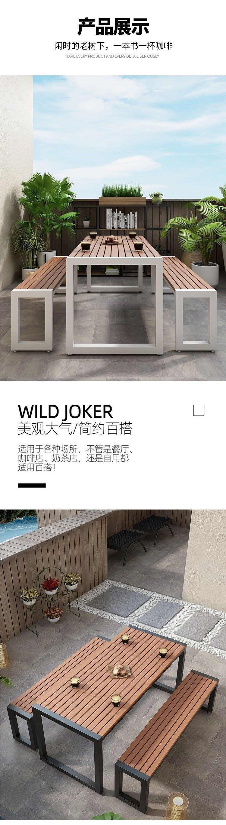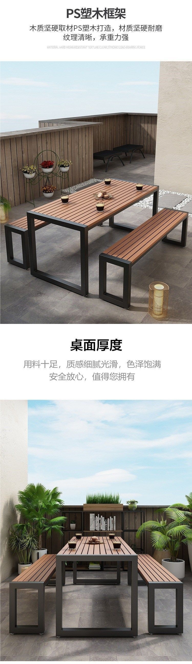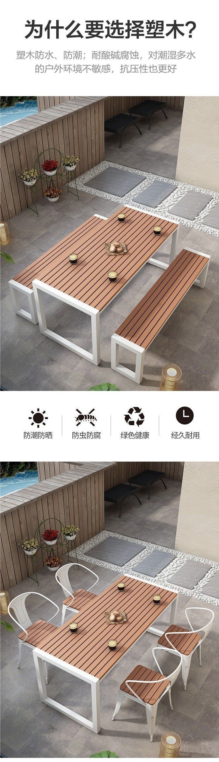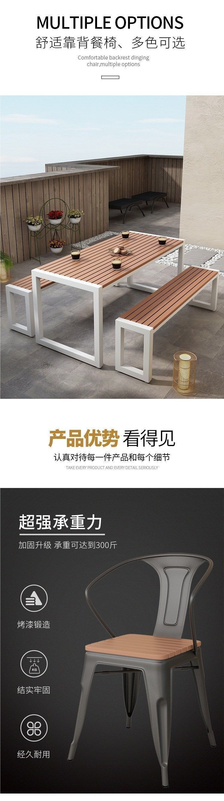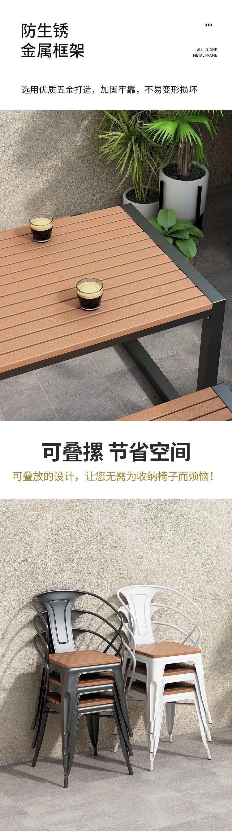 단철 자외선 차단제 야외 테이블과 의자 야시장 야외 간단한 복고풍 플라스틱 목재 식탁과 의자 발코니 테이블과 의자 커피 숍 테이블과 의자