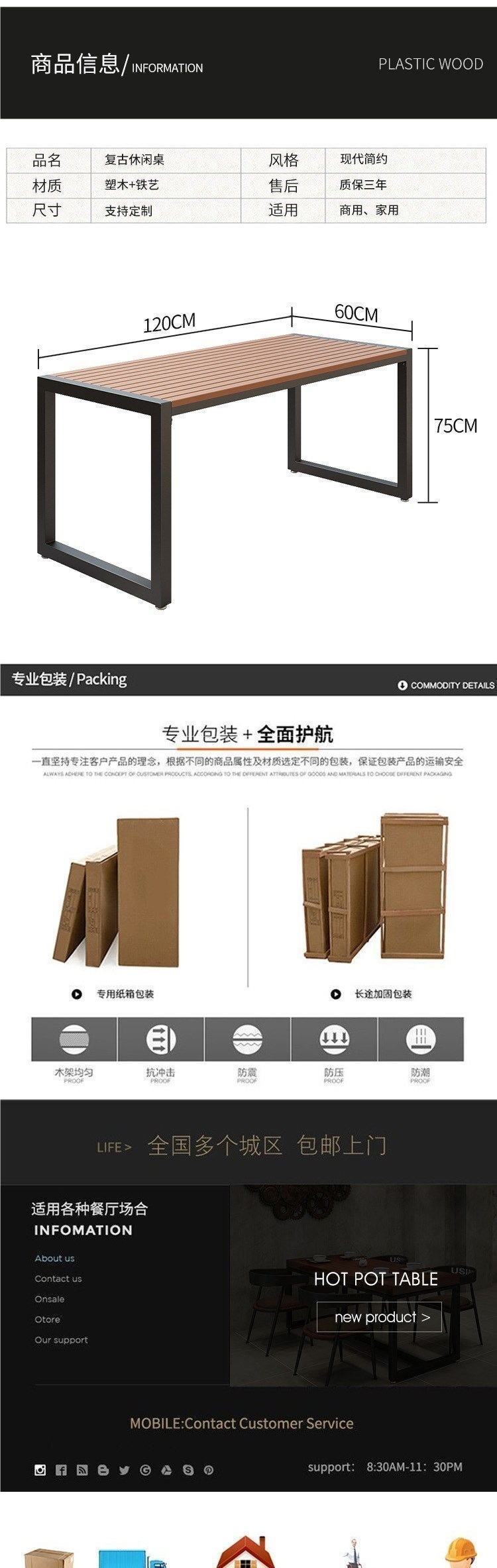 단철 자외선 차단제 야외 테이블과 의자 야시장 야외 간단한 복고풍 플라스틱 목재 식탁과 의자 발코니 테이블과 의자 커피 숍 테이블과 의자스토어 가기