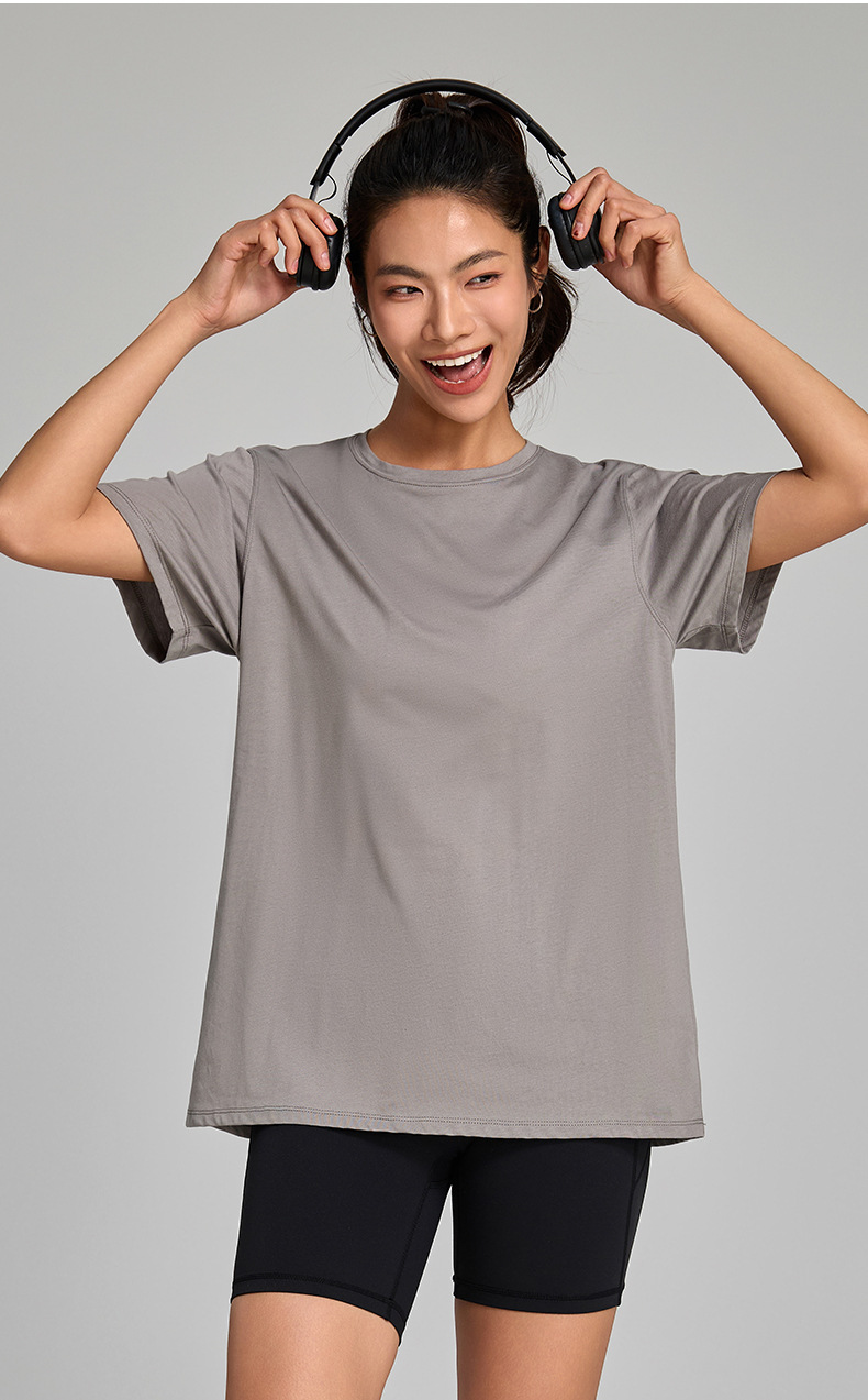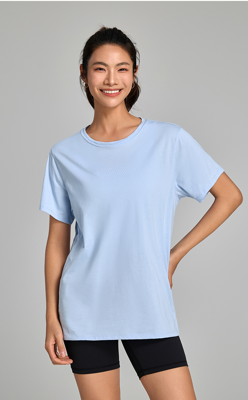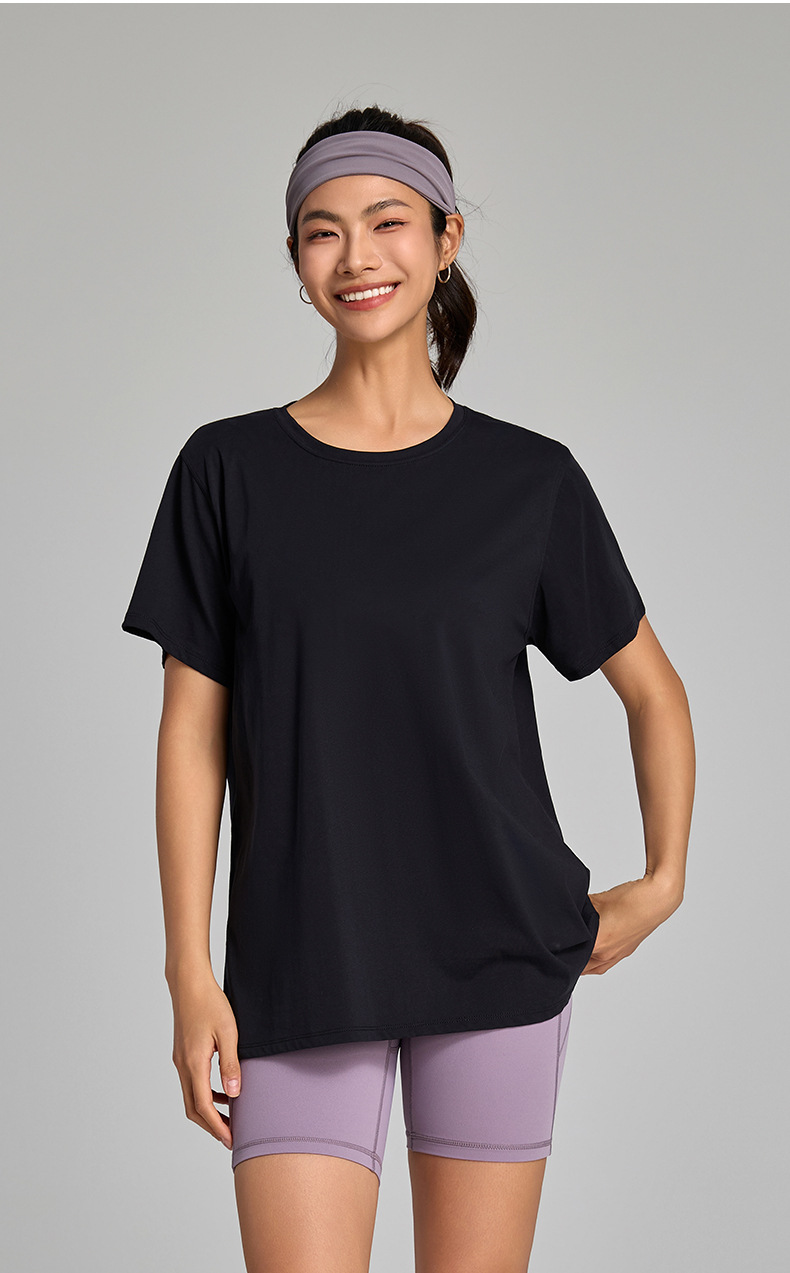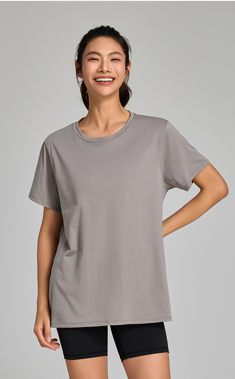 새로운 여름 긴 요가 착용 티셔츠 운동복 피트니스 착용 느슨한 캐주얼 일일 통기성 코튼 T 반팔 여성