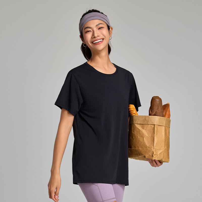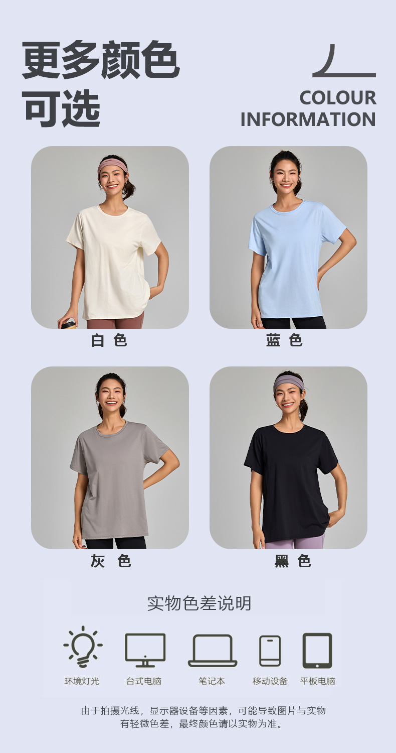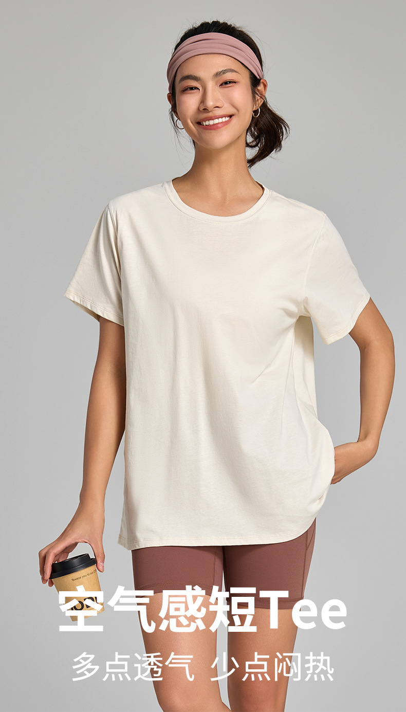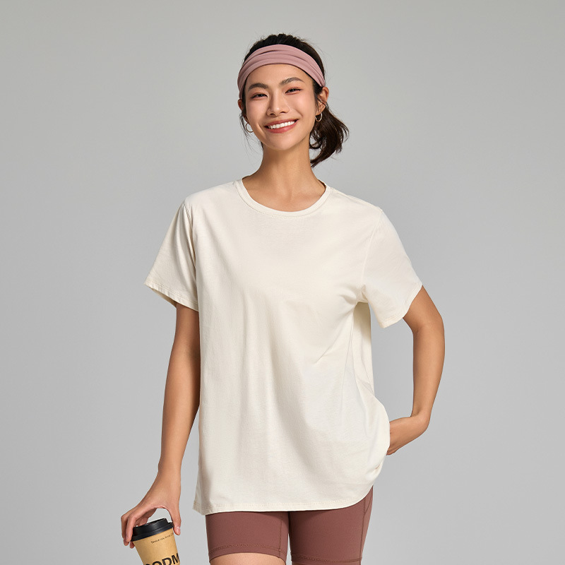 새로운 여름 긴 요가 착용 티셔츠 운동복 피트니스 착용 느슨한 캐주얼 일일 통기성 코튼 T 반팔 여성