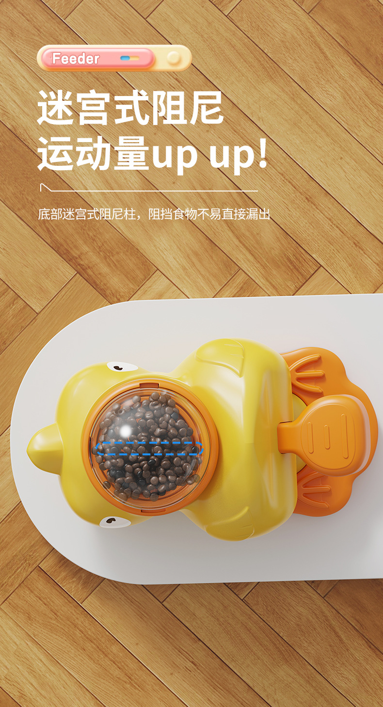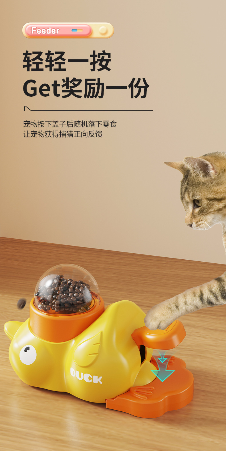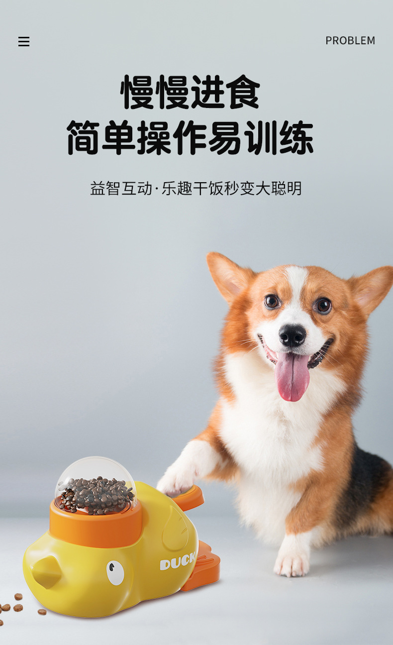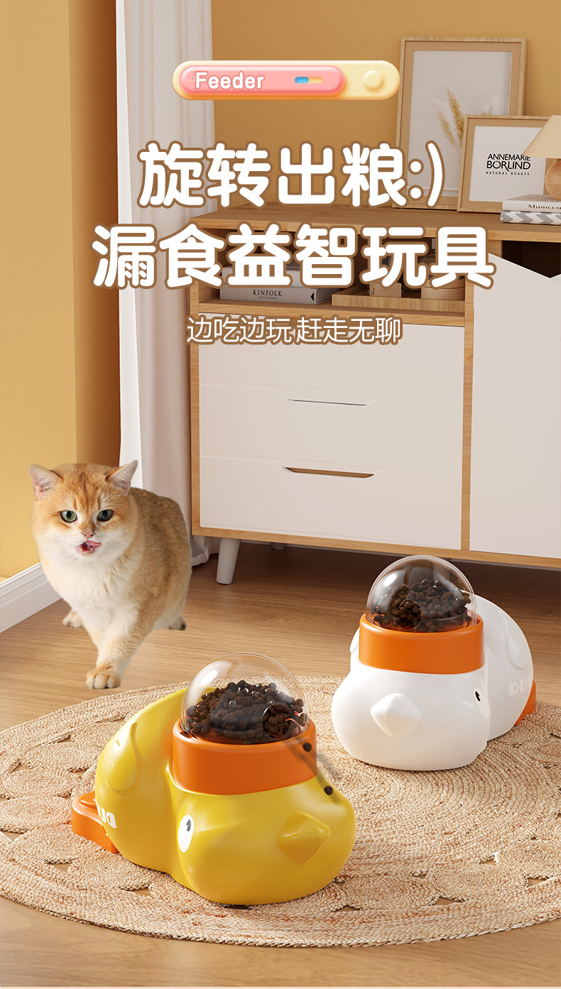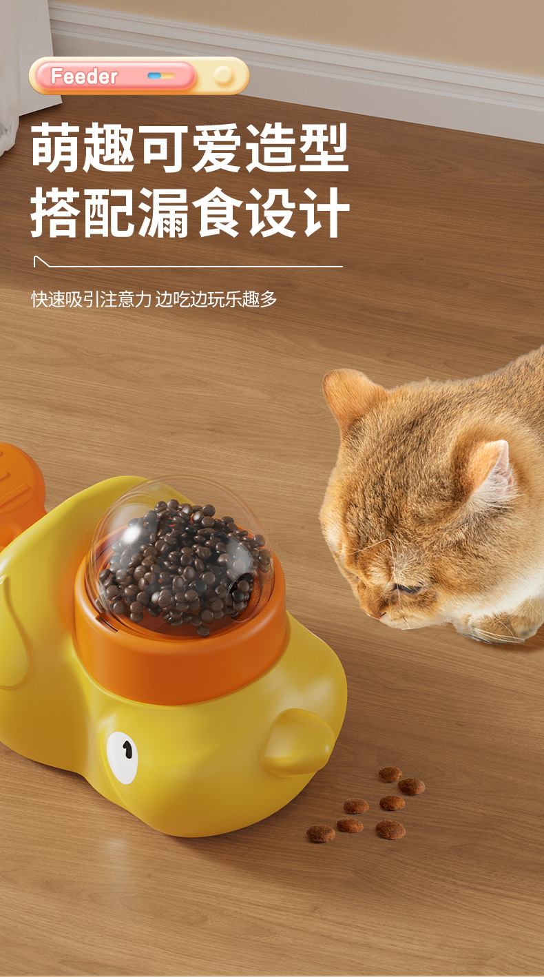 국경을 넘는 작은 노란 오리 애완동물 자동 급식기, 스마트 인터랙티브 강아지 급식기, 고양이와 강아지용 자동 급식 장난감, 고양이 밥그릇스토어 가기