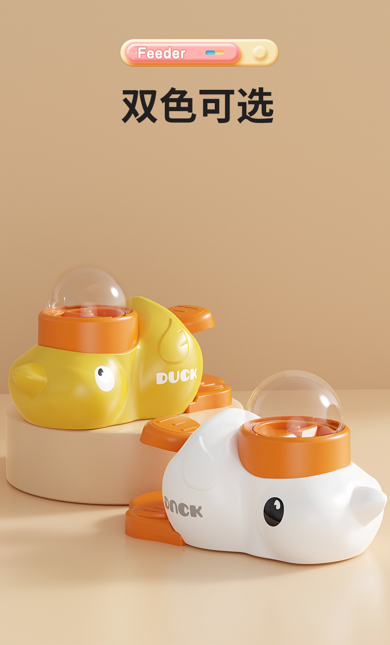 국경을 넘는 작은 노란 오리 애완동물 자동 급식기, 스마트 인터랙티브 강아지 급식기, 고양이와 강아지용 자동 급식 장난감, 고양이 밥그릇