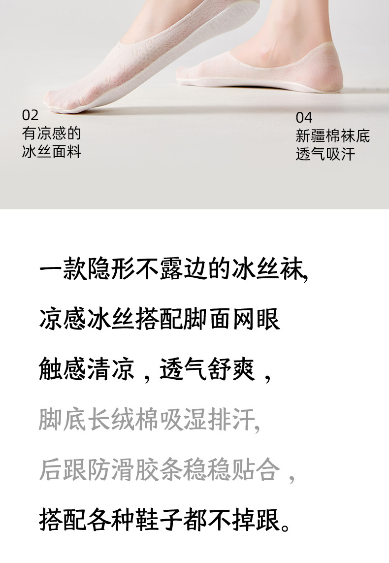 여름 여성용 맞춤 양말, 얇고 시원한 아이스 실크 보이지 않는 양말, 항균, 땀 흡수 및 탈취 발, 순면 바닥 땀 흡수 보트 양말스토어 가기