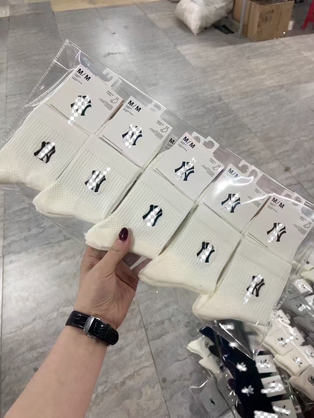 • NY 미드 종아리 흰색 자수 마사지 바닥 메쉬 코튼 양말