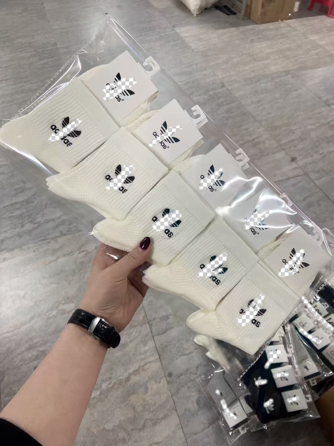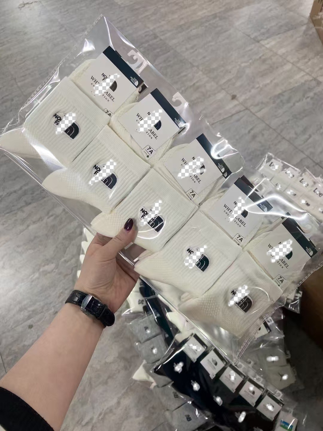 • 노스 페이스 미드 종아리 흰색 자수 마사지 바닥 메쉬 코튼 양말