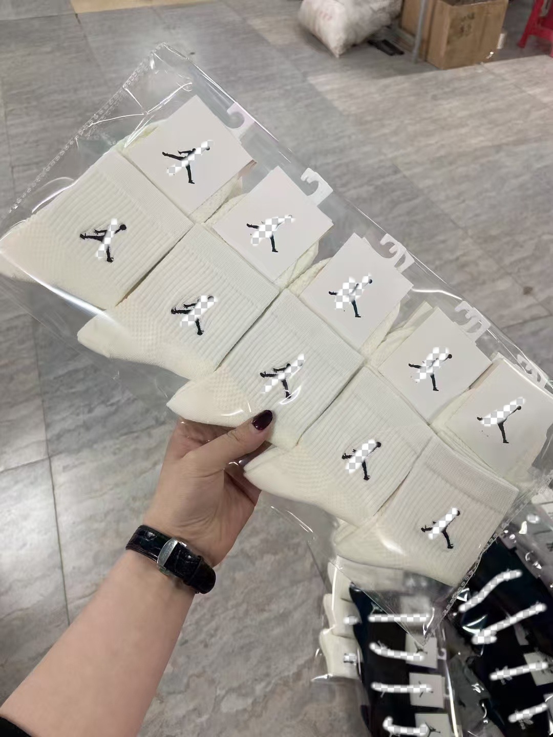 • YNKS 중간 튜브 검정 자수 마사지 바닥 메쉬 순면 양말