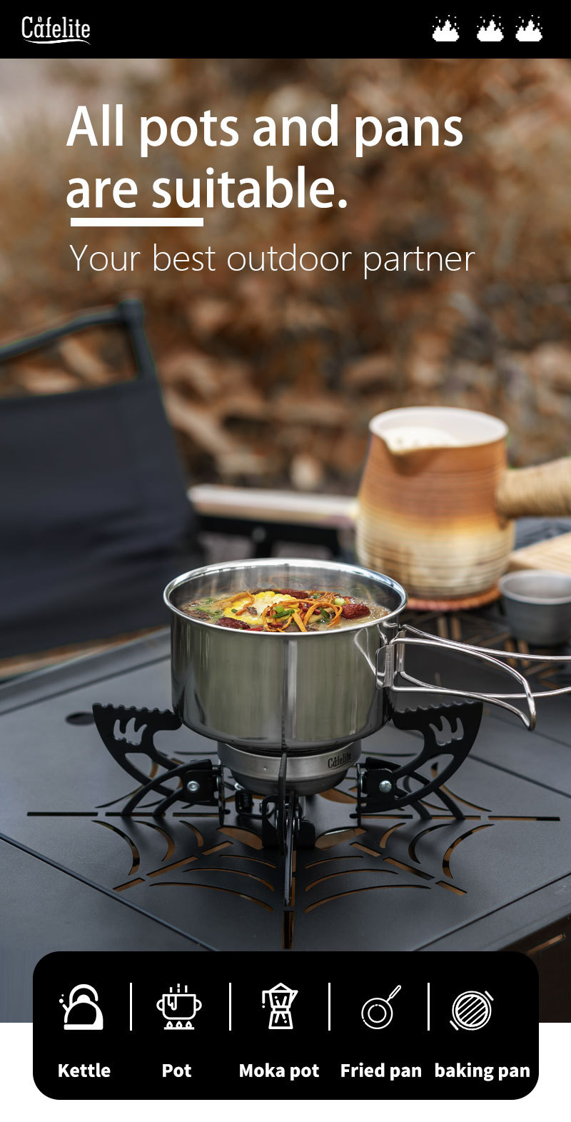 Cafelite 적외선 가스 UFO 분할 스토브 헤드 차 요리 야외 피크닉 접이식 캠핑 스파이더 스토브