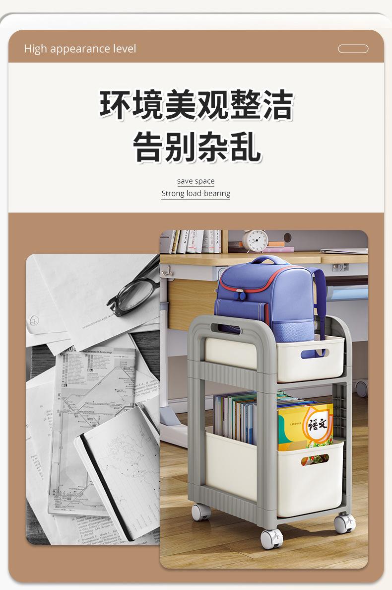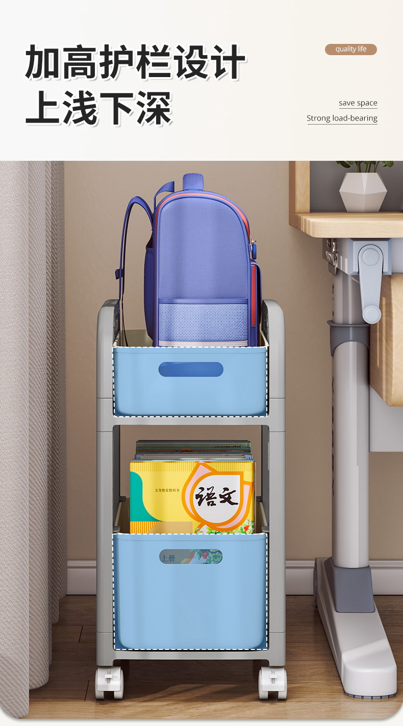 [맞춤형] 책가방 수납선반, 이동식 트롤리, 책수납선반, 기숙사용 가정용 다층 책가방