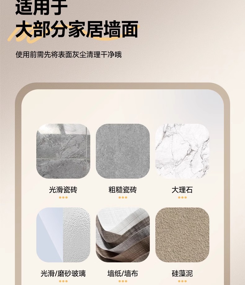 • 4가지 모델 각각에 대해 하나씩 넓어지고 두꺼워지며/벽을 손상시키지 않습니다.