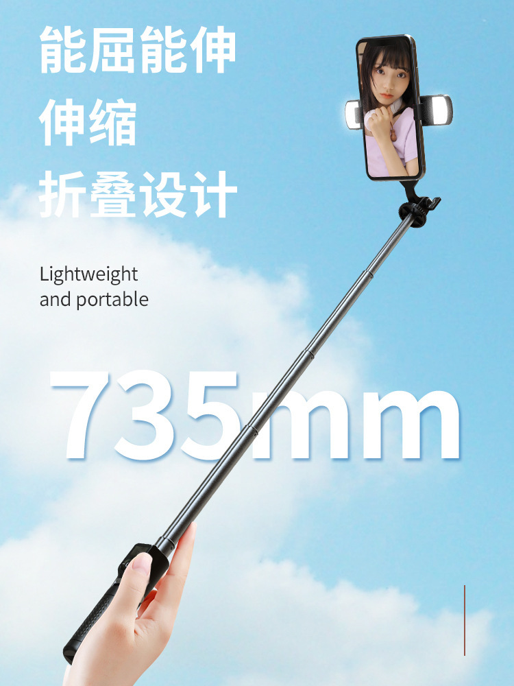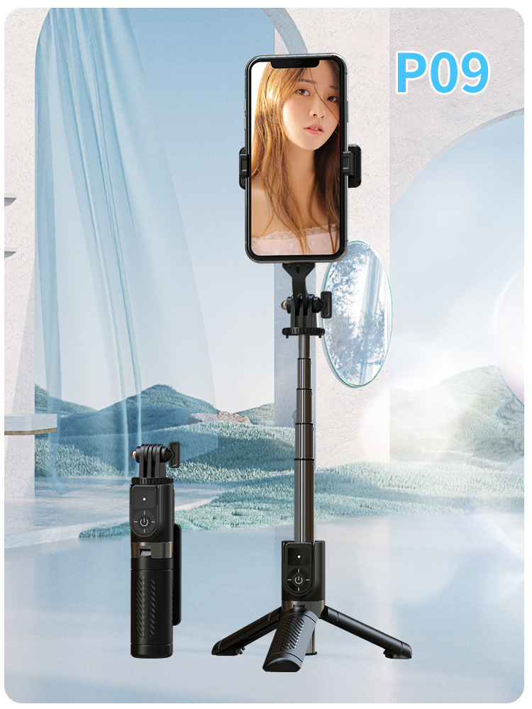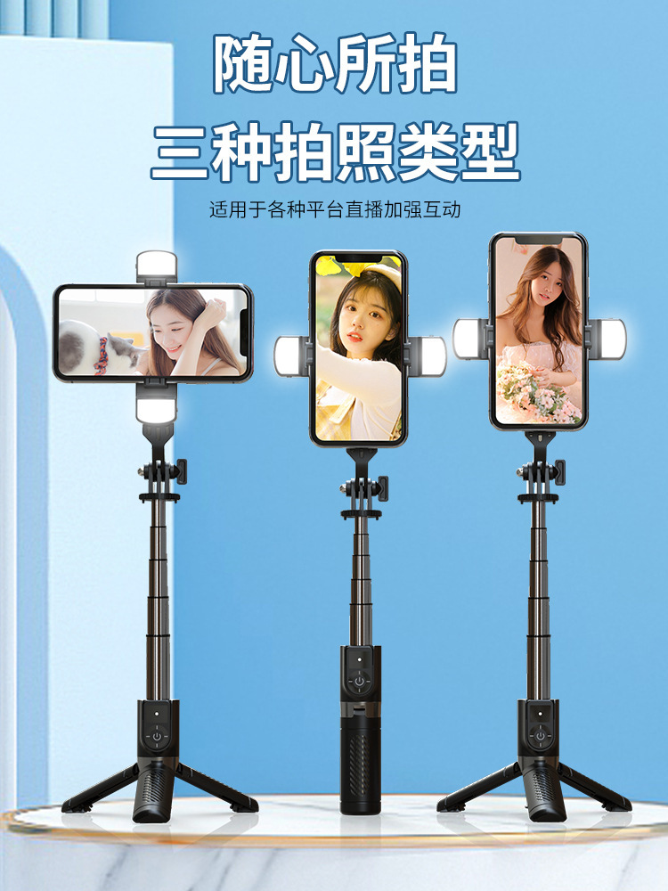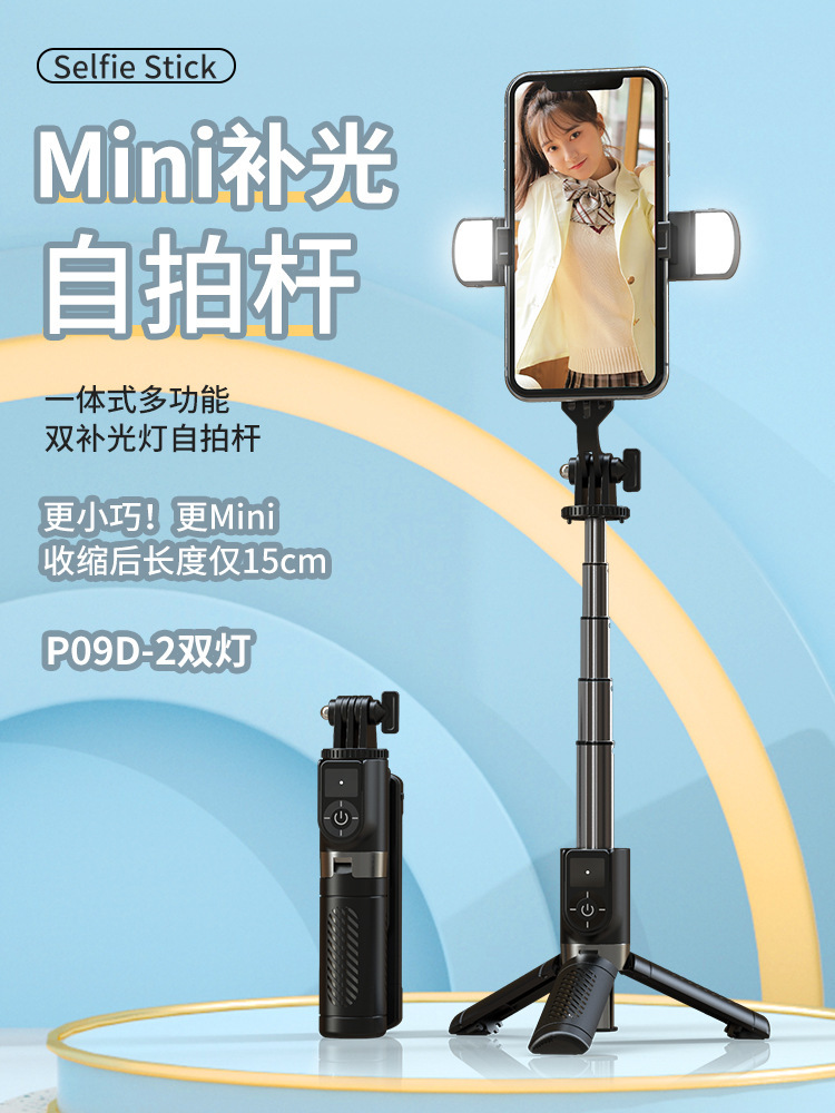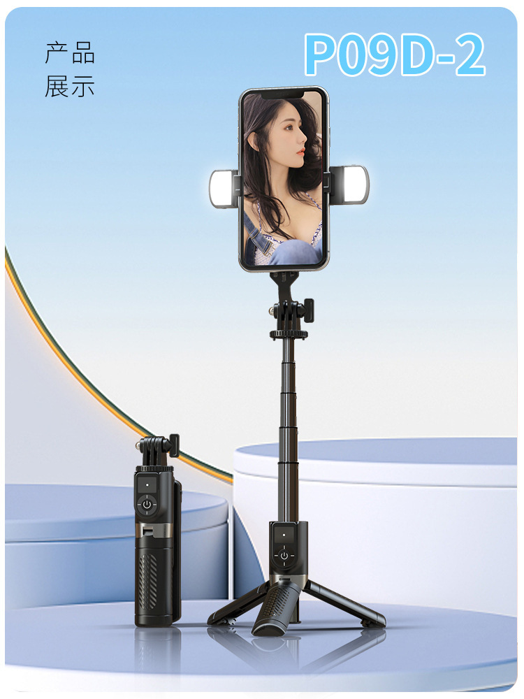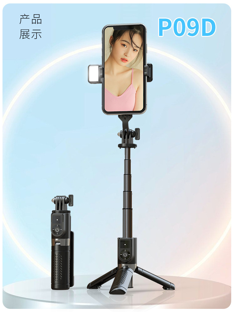 새로운 P08 미니 블루투스 필 라이트 셀카 스틱 삼각대 라이브 방송 휴대 전화 범용 사진 스탠드 텔레스코픽 스틱