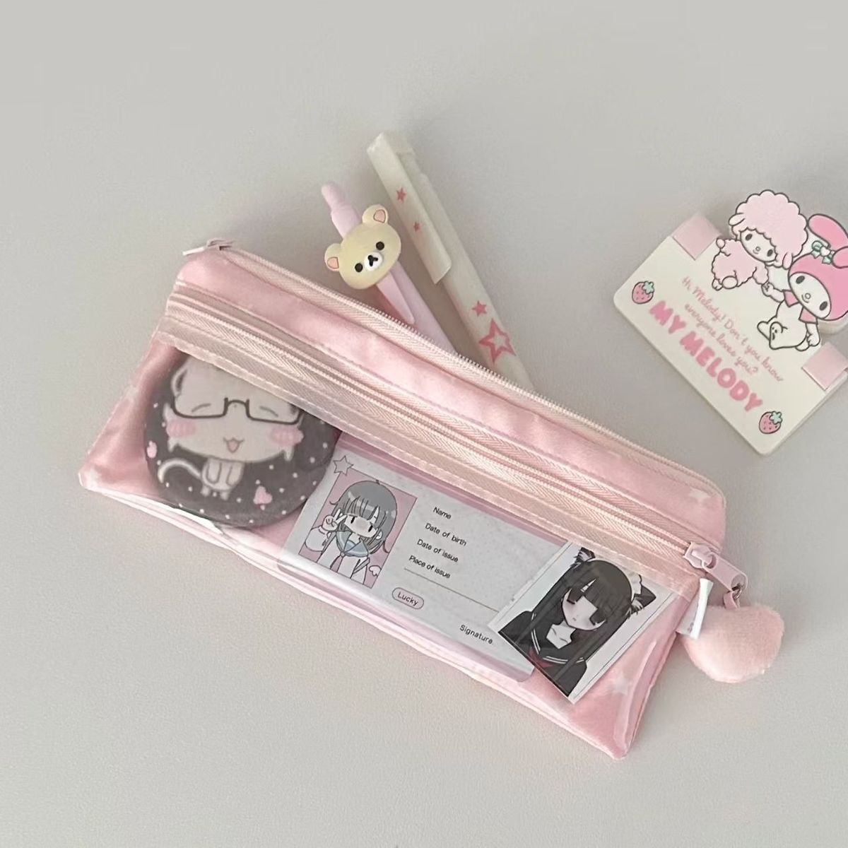 Xiaohongshu의 같은 스타일 핑크 스타 연필 가방 ins 고급스러운 소녀 하트 학생 대용량 문구 보관 가방