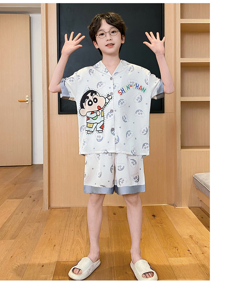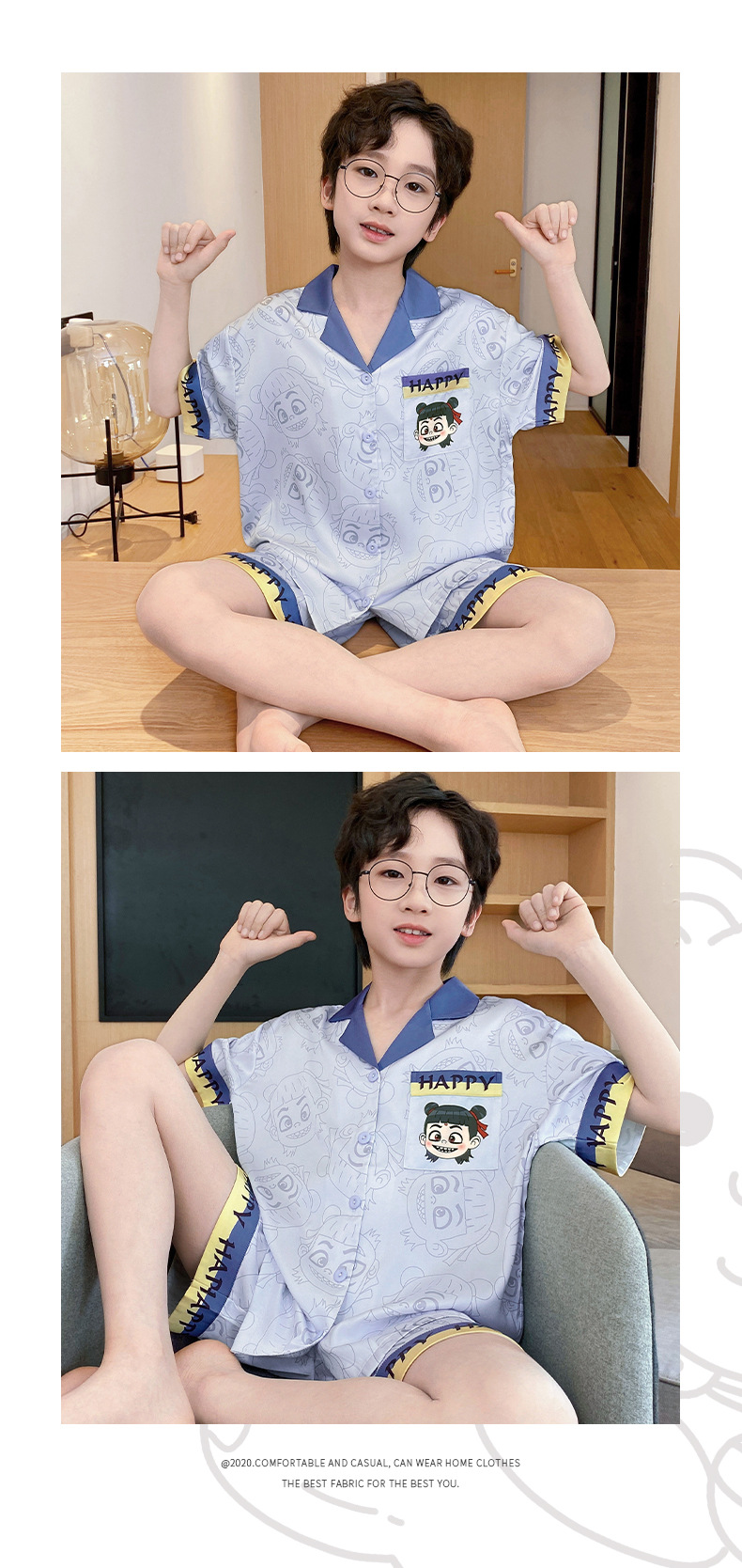 2025 새로운 소년 잠옷 여름 얼음과 눈 실크 시원한 반팔 반바지 얇은 어린이 소년 큰 어린이 가정 옷스토어 가기