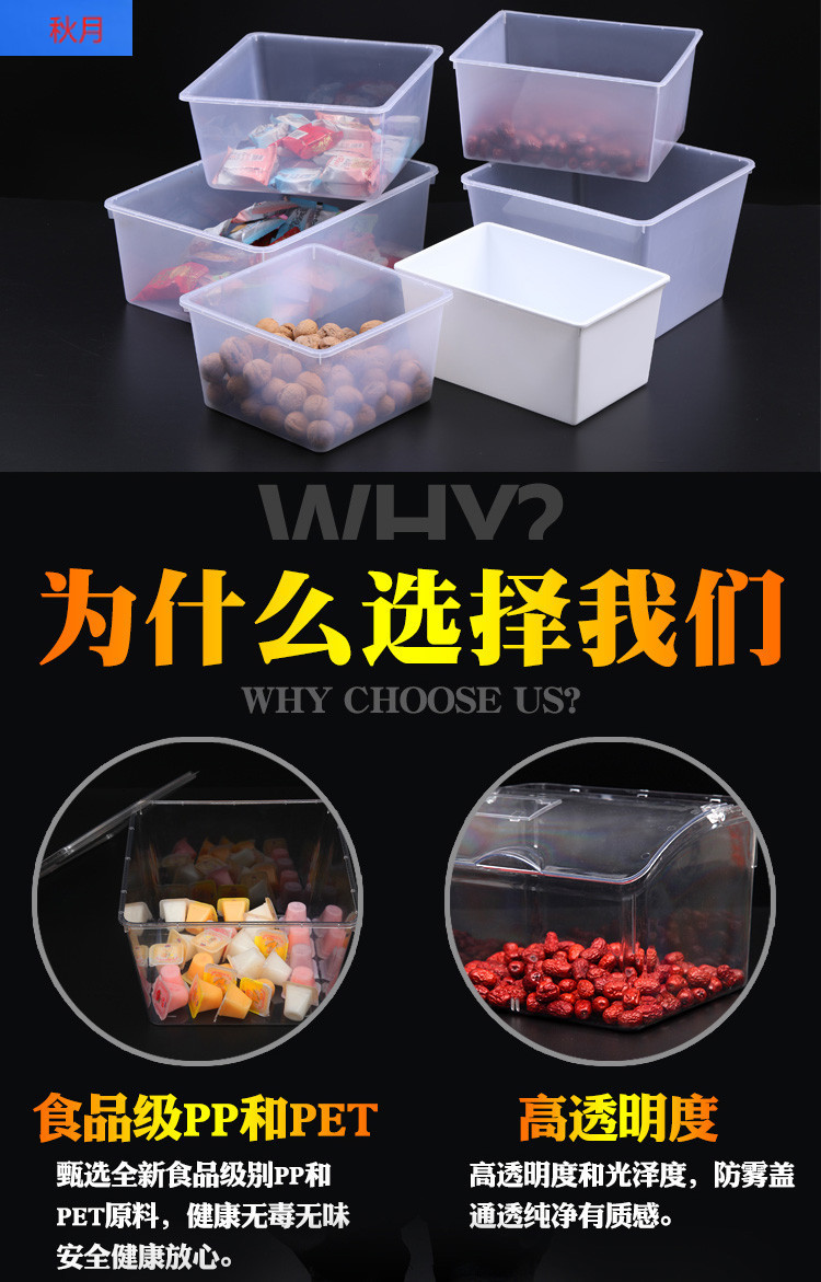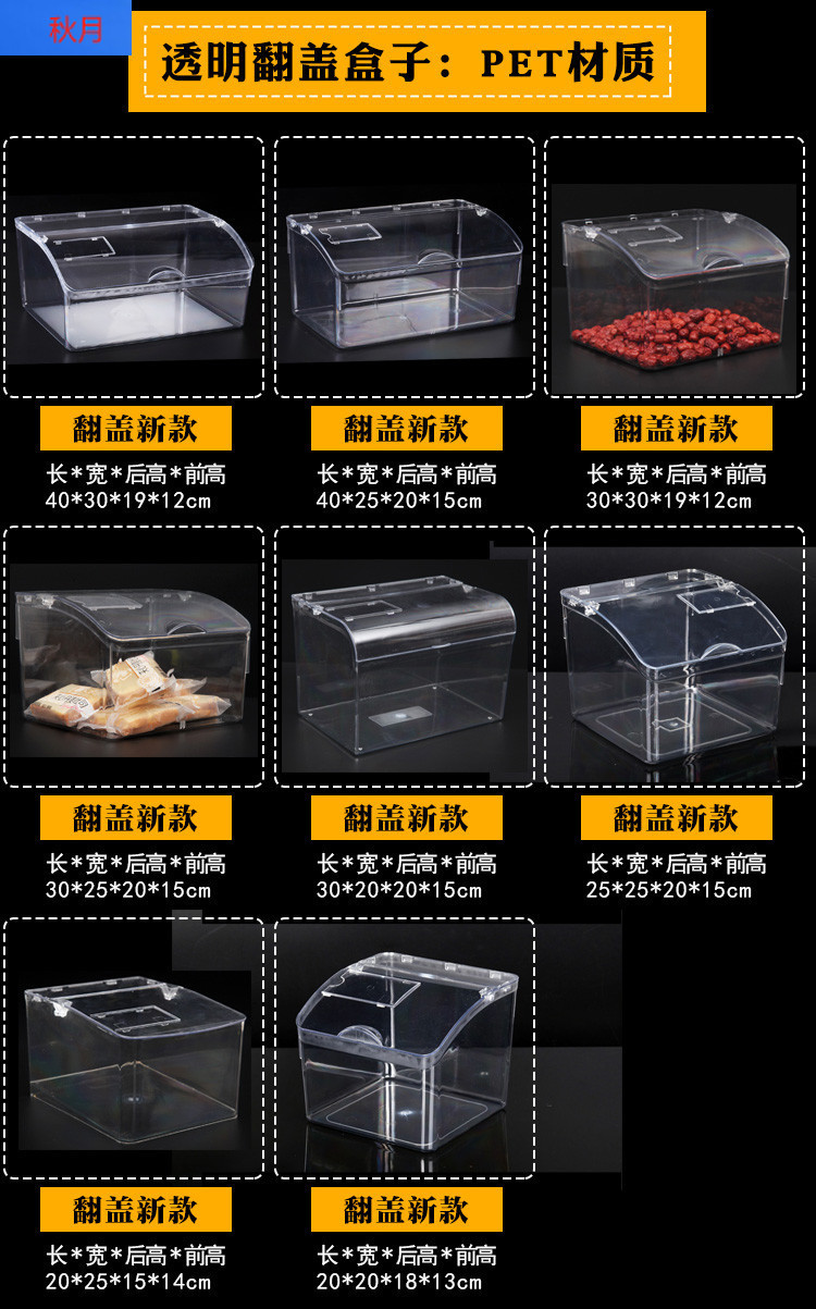 슈퍼마켓 스낵 디스플레이 상자, 식품 상자, 뚜껑이 있는 트렌디한 선반 디스플레이 상자, 밀봉 상자, 말린 과일 대량 디스플레이 캐비닛