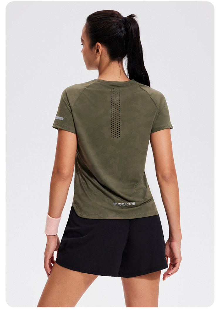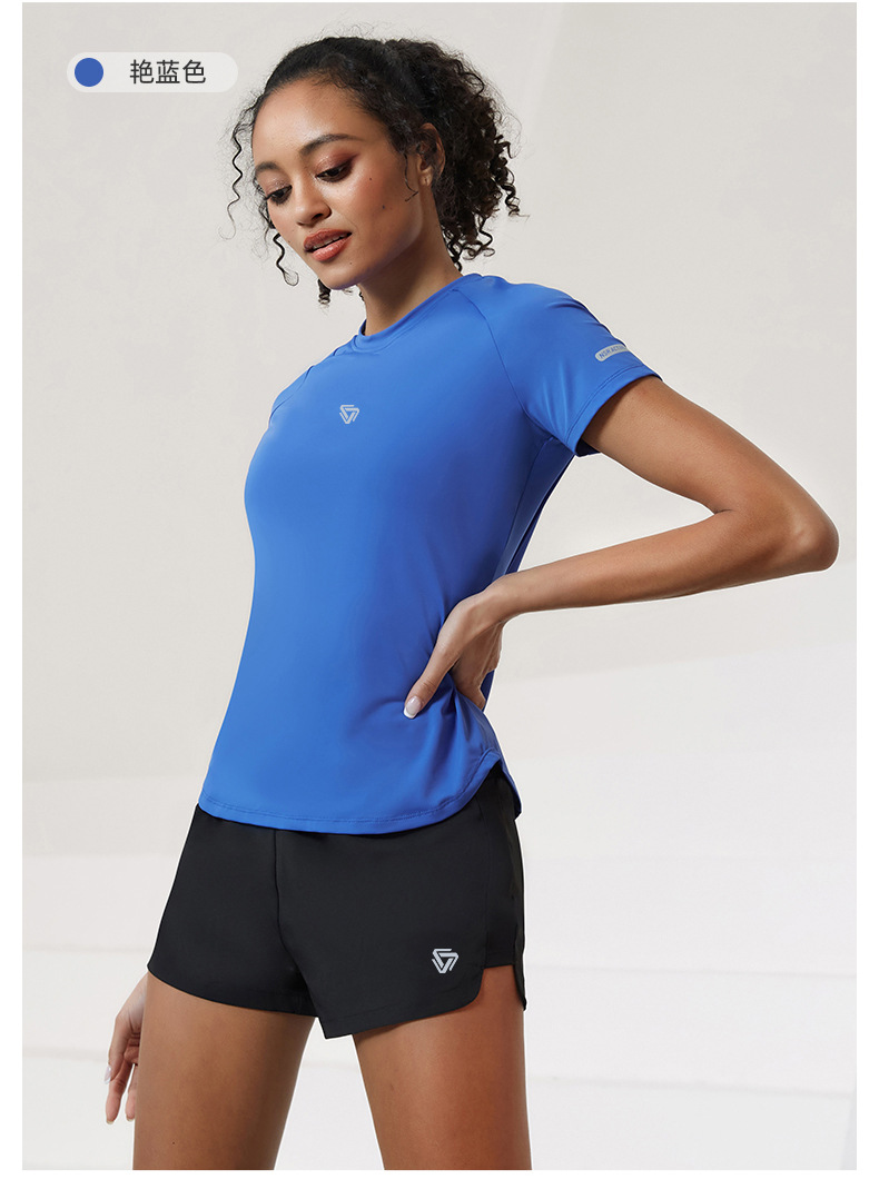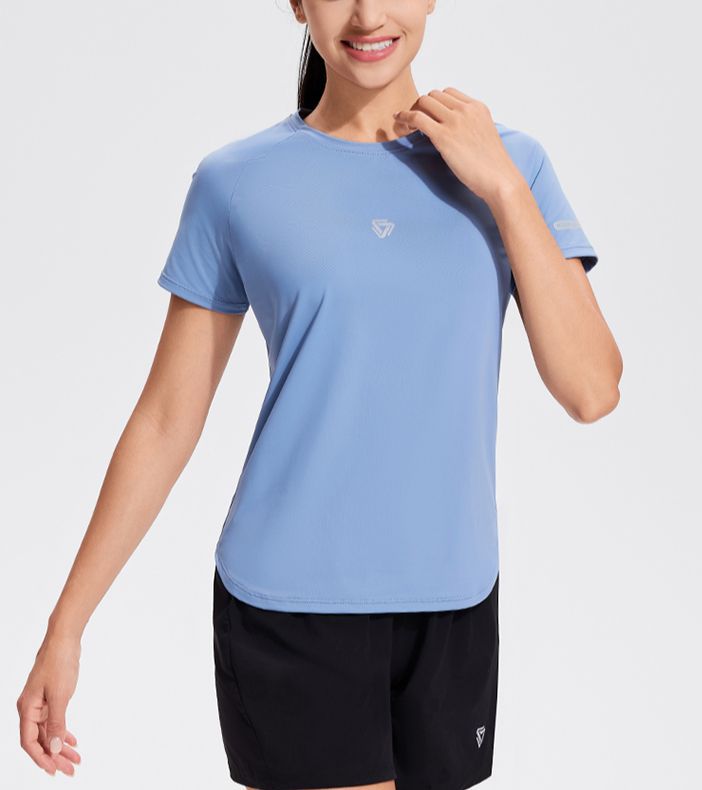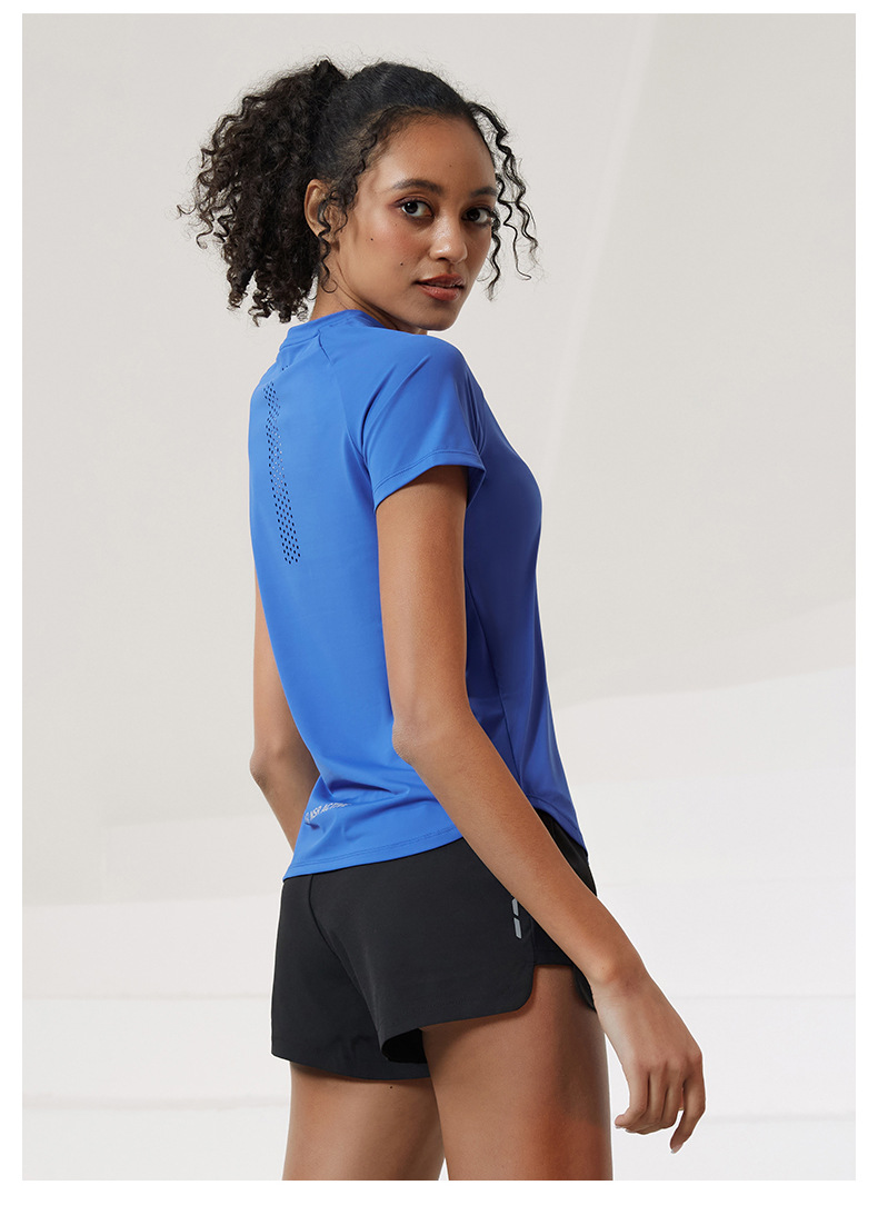 인기 있는 통기성 메쉬 속건성 반팔 라운드 넥 러닝 캐주얼 스포츠 티셔츠 전문 피트니스 요가 의류 탑스토어 가기