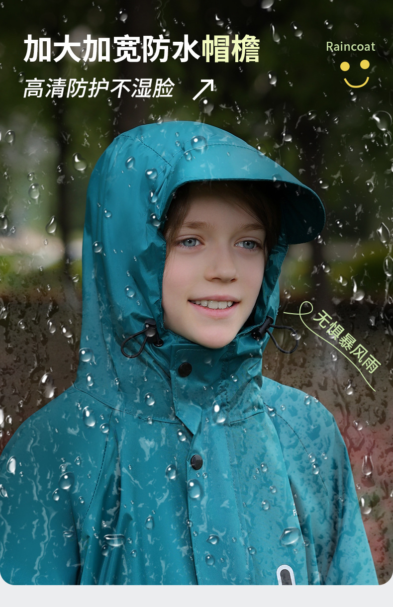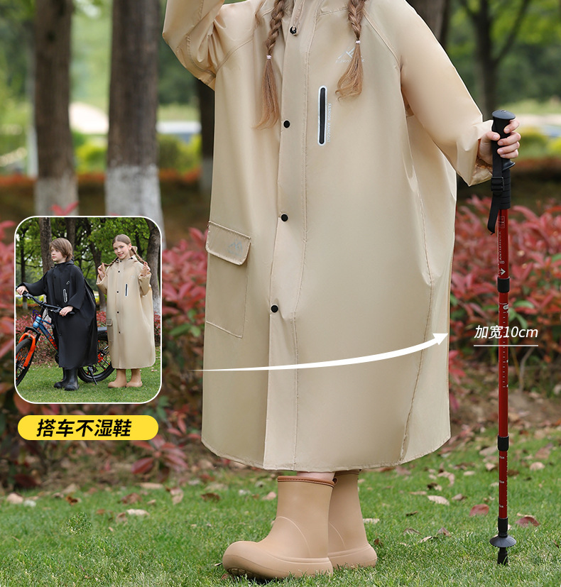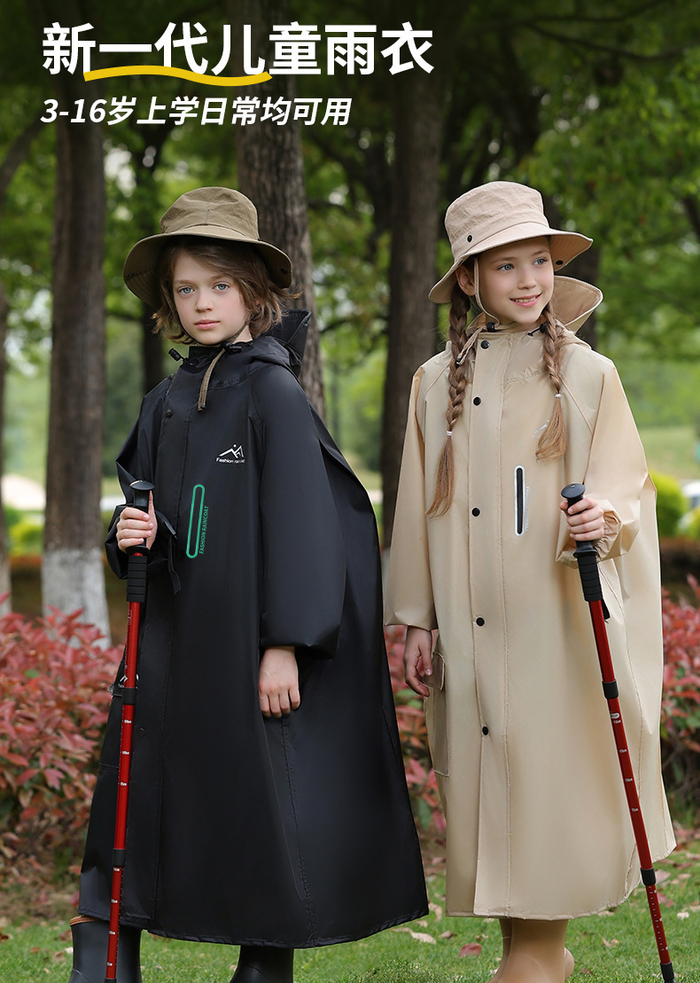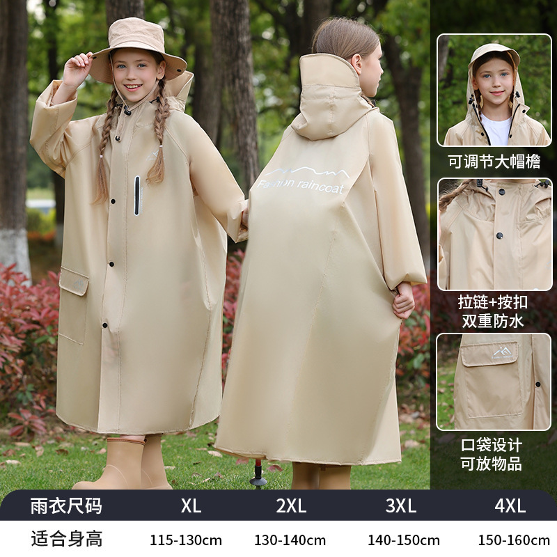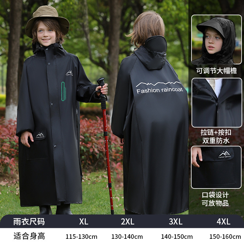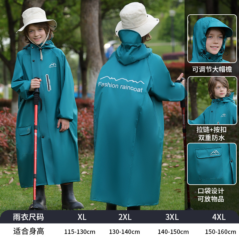 어린이 비옷, 긴 전신 폭우 판초, 하이킹 어린이 소년 소녀, 큰 어린이 학교 가방, 중대형 어린이 비옷