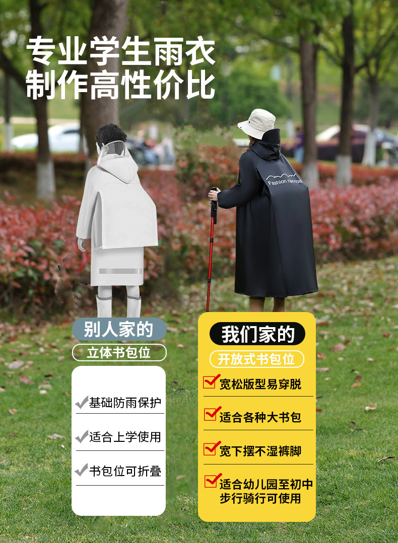 어린이 비옷, 긴 전신 폭우 판초, 하이킹 어린이 소년 소녀, 큰 어린이 학교 가방, 중대형 어린이 비옷스토어 가기