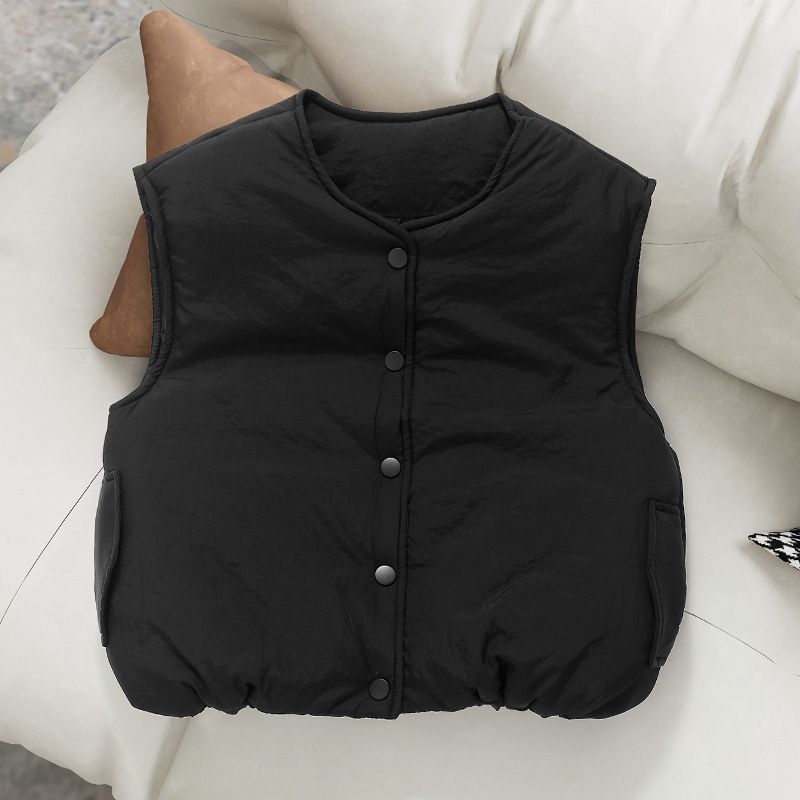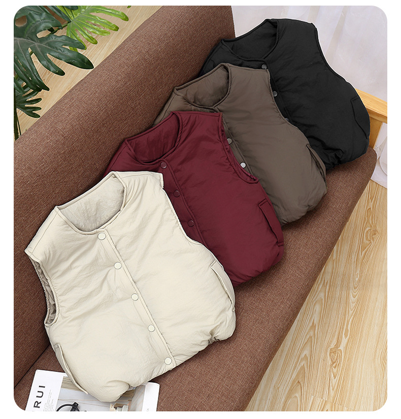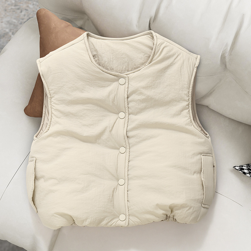 2025 한국어 버전 가을, 겨울 새로운 어린이 누비 조끼 소년과 소녀를위한 단색 두꺼운면 조끼 카디건 유행스토어 가기