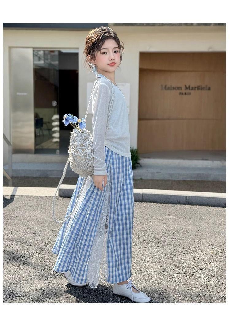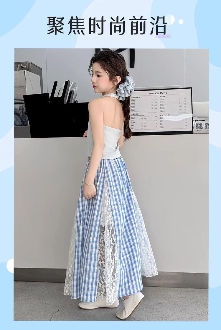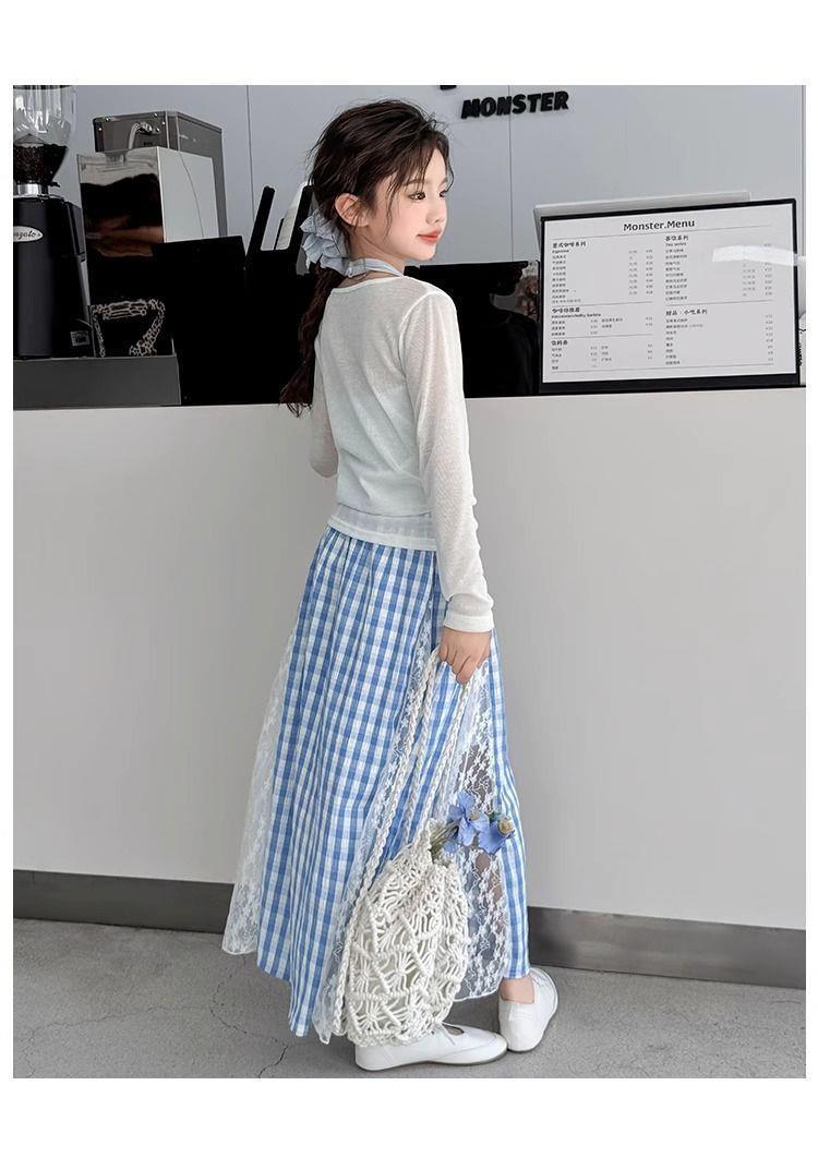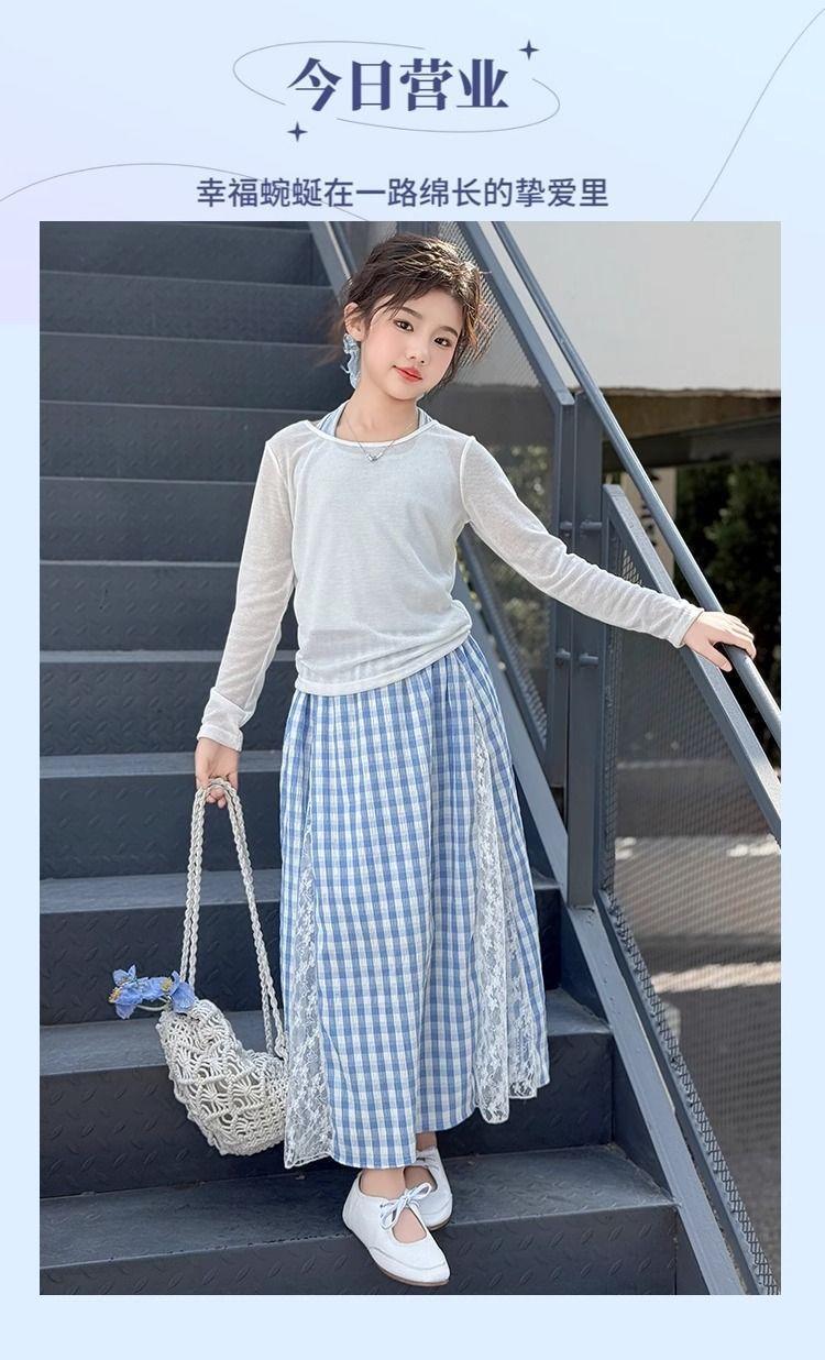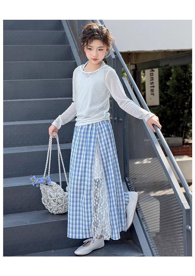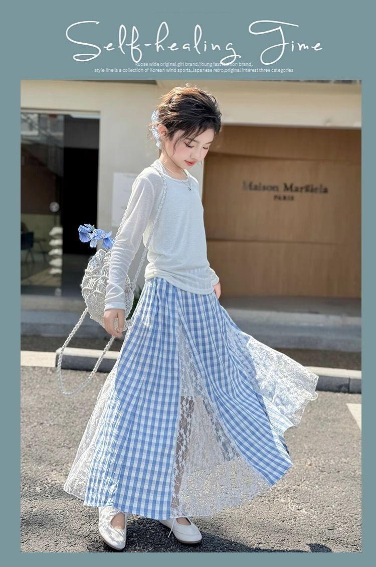 여아 패셔너블하고 다재다능한 스플라이스 레이스 스커트, 여름 신작 한국 스타일 다재다능한 캐주얼 체크 무늬 스커트