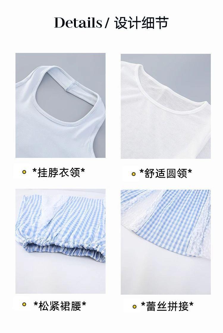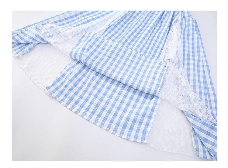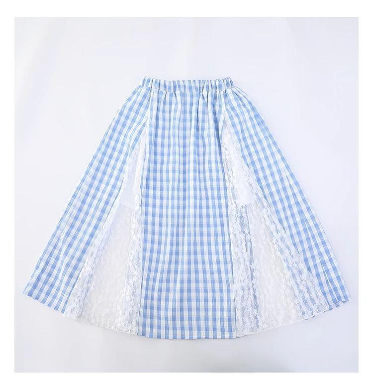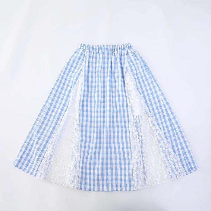 여아 패셔너블하고 다재다능한 스플라이스 레이스 스커트, 여름 신작 한국 스타일 다재다능한 캐주얼 체크 무늬 스커트스토어 가기