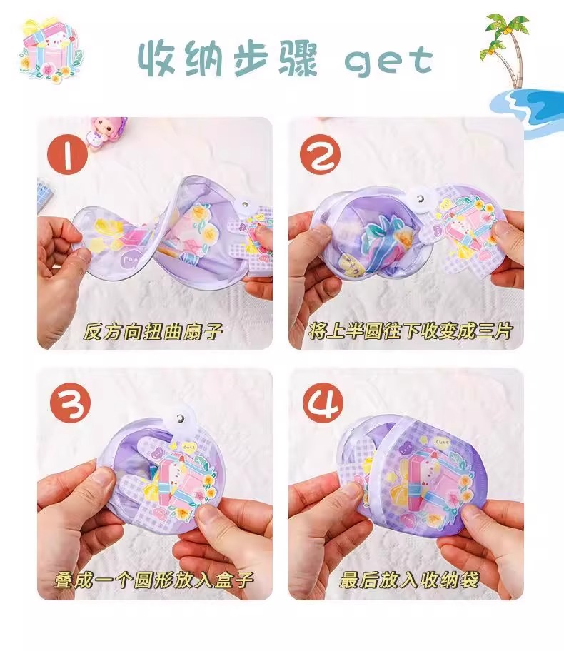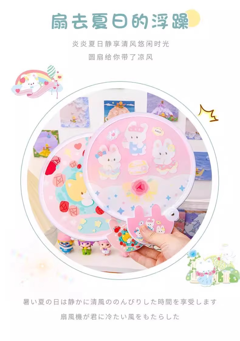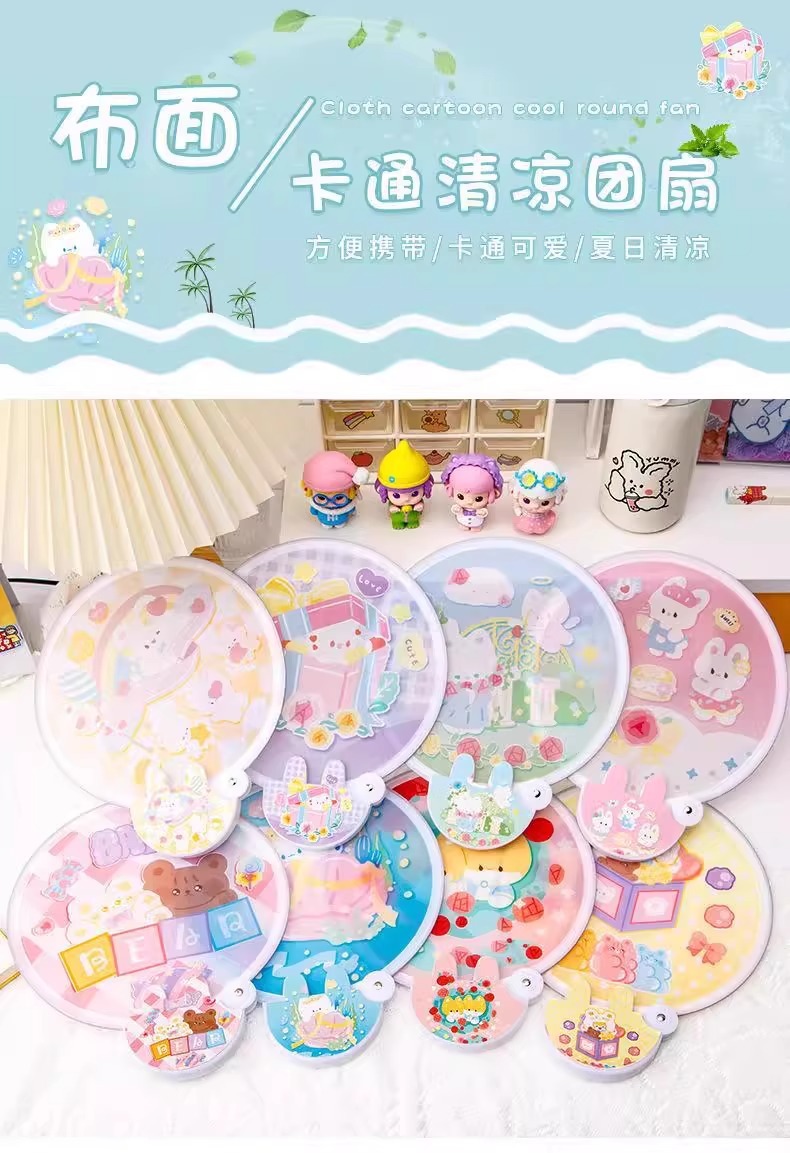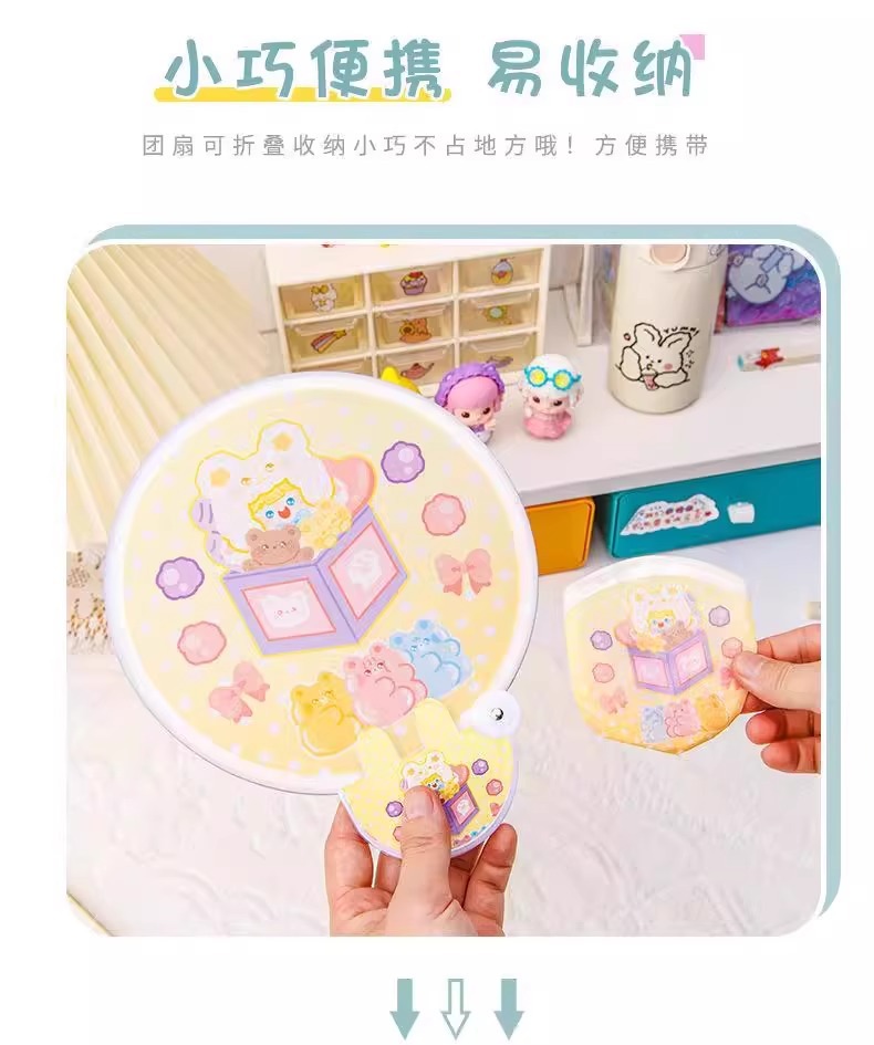 학생과 어린이를 위한 귀여운 만화 창의적인 접이식 부채, 여름 휴대용 포켓 핸드 크랭크 미니 부채스토어 가기