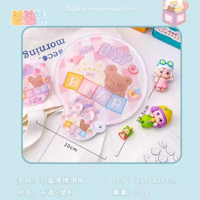 학생과 어린이를 위한 귀여운 만화 창의적인 접이식 부채, 여름 휴대용 포켓 핸드 크랭크 미니 부채