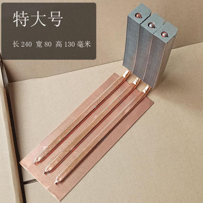 铜板和散热片热管之间为焊接,焊接方式为回流焊接,不是用胶粘的!