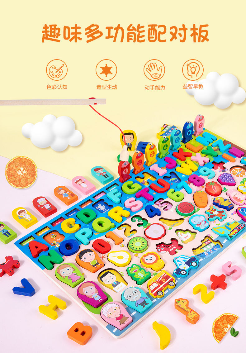 • 촬영하지 마세요: 5가지 기능이 모두 포함된 교육용 과일 매칭 + [12홀 기하학적 손 잡기 보드]