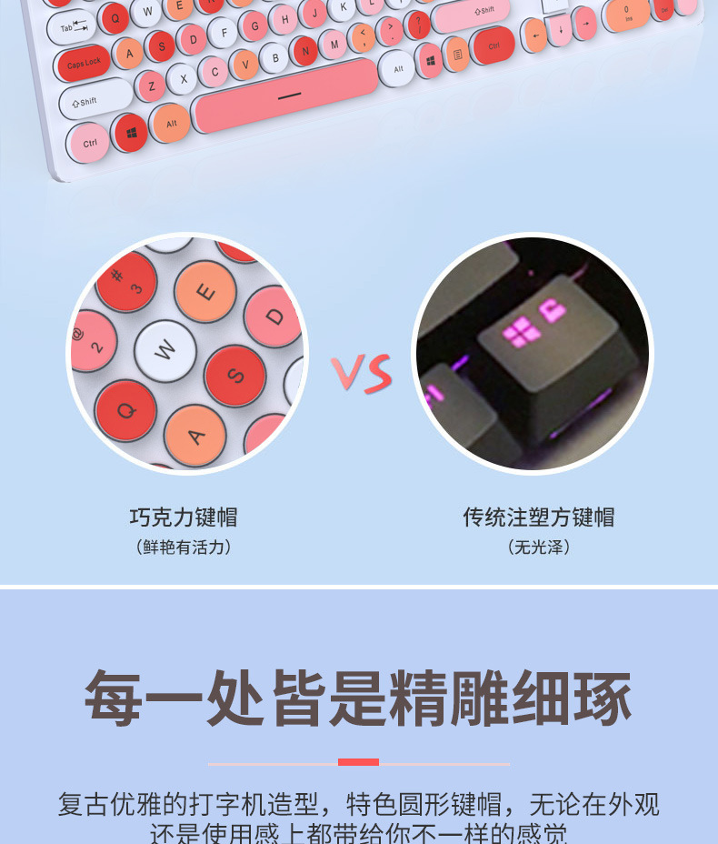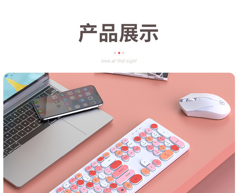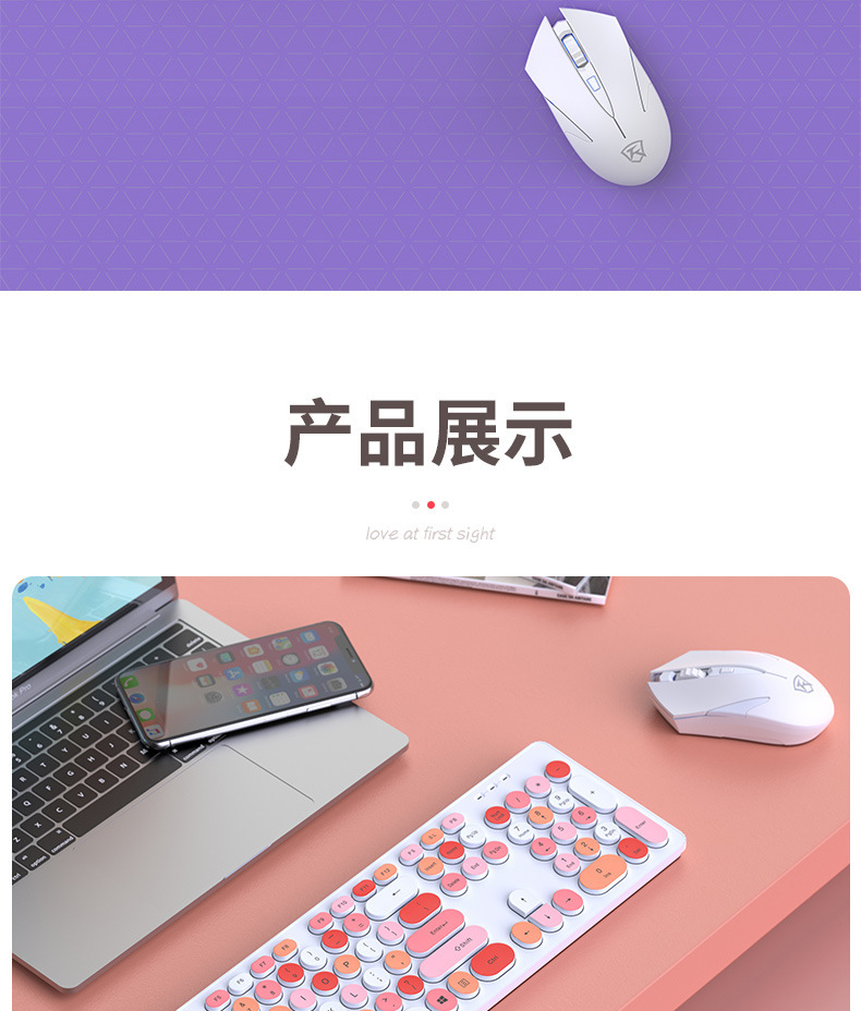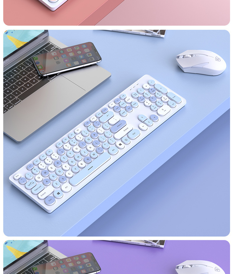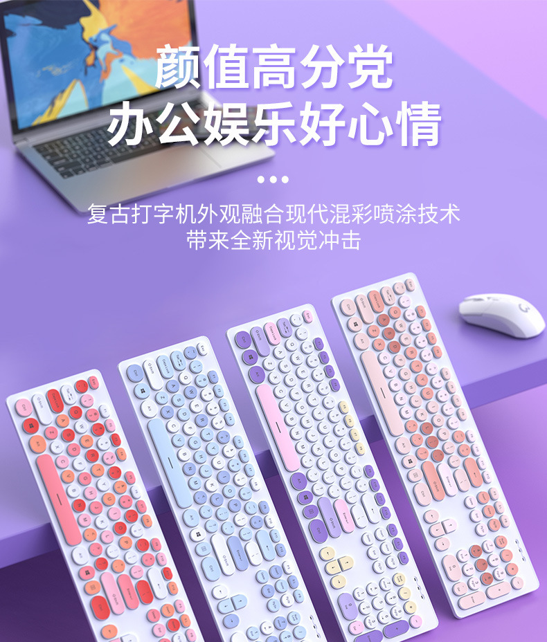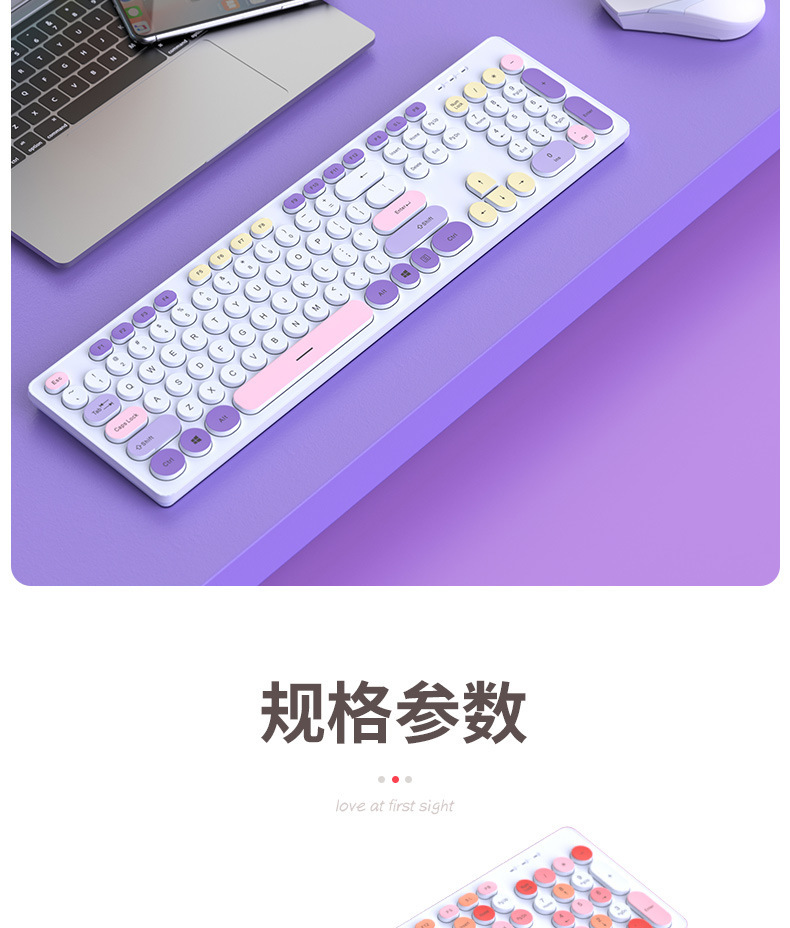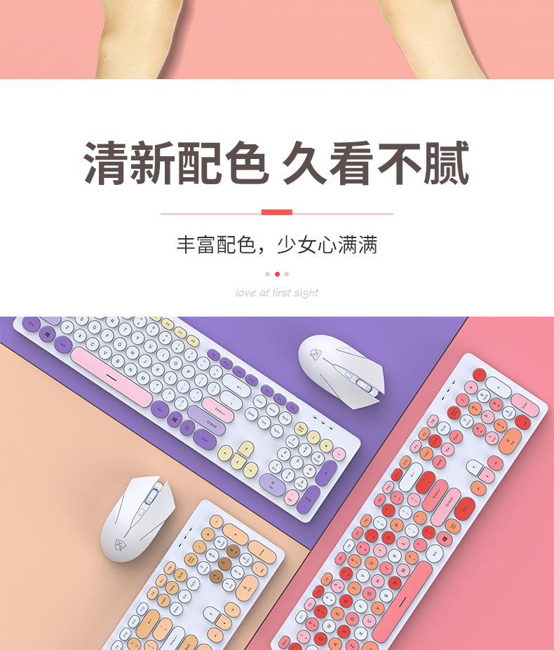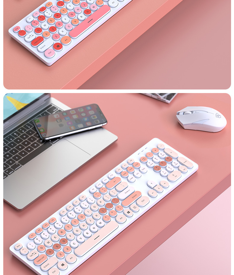 • 흰색 및 분홍색 무광택 버전 - 원형 키캡 + 마우스