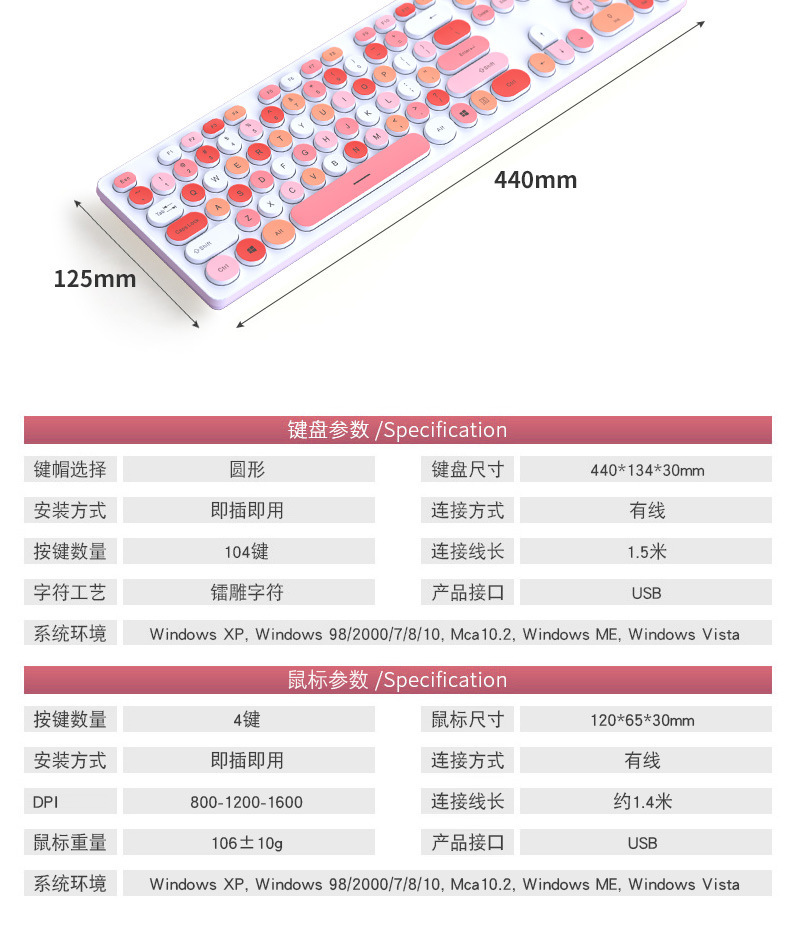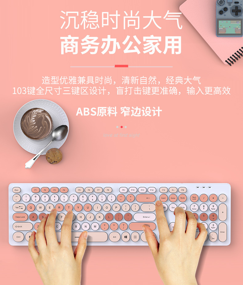 • 흰색 및 분홍색 무광택 버전 - 원형 키캡 + 키보드 멤브레인