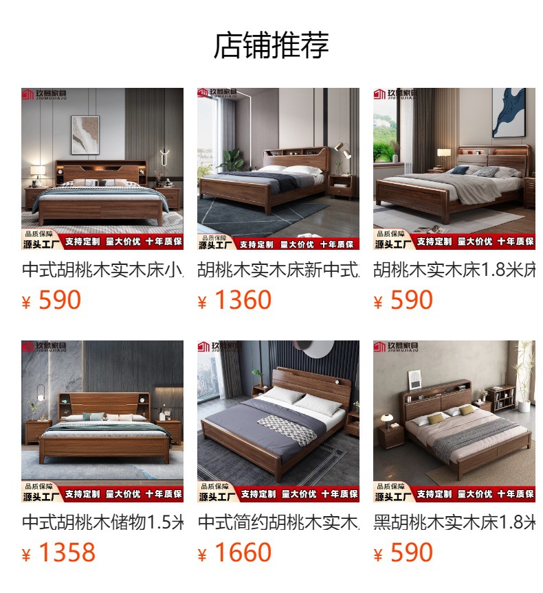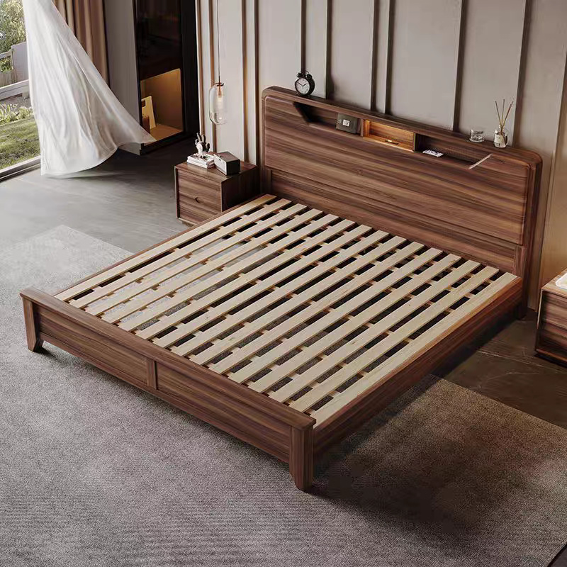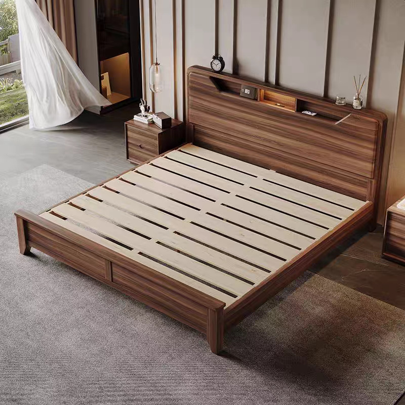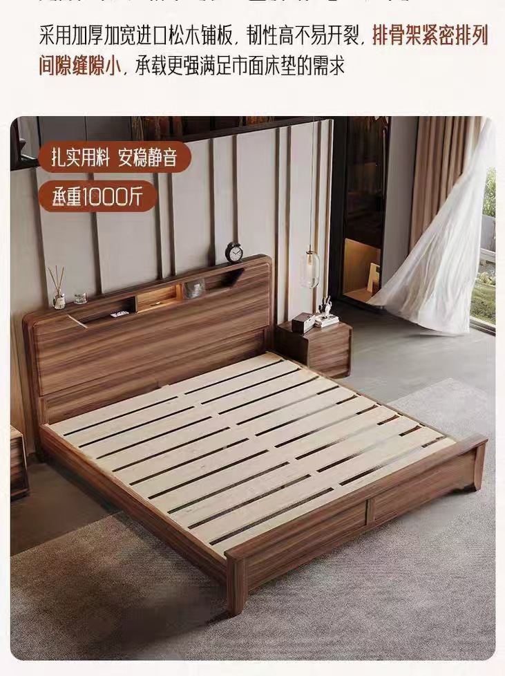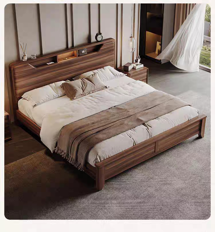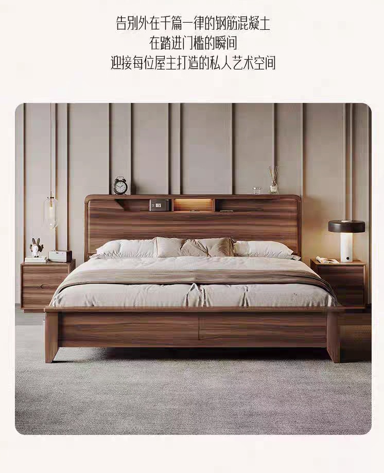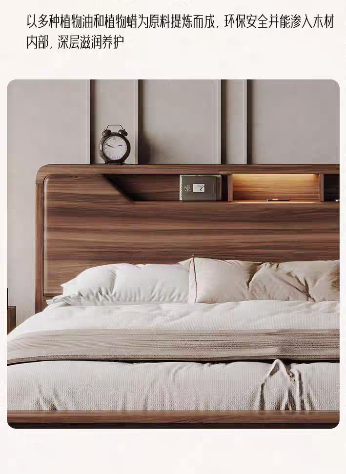 북유럽 가벼운 고급 호두나무 원목 침대 현대적인 미니멀리스트 수납 침대 홈 마스터 침실 1.68m 더블 킹 사이즈 침대스토어 가기