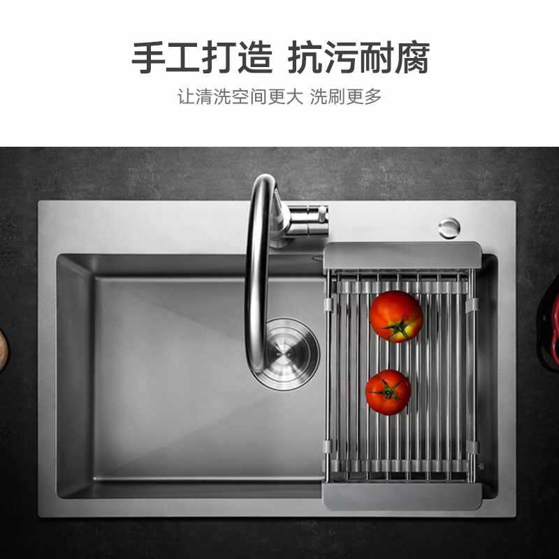 ✅ 주방 나노 싱크대 수제 단일 슬롯 304 스테인레스 스틸 회색 식기 세척 싱크대 대형 단일 싱크 세트스토어 가기