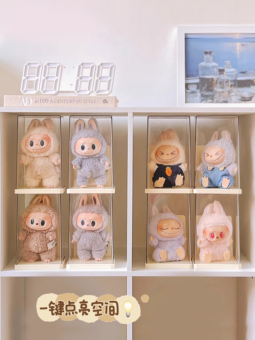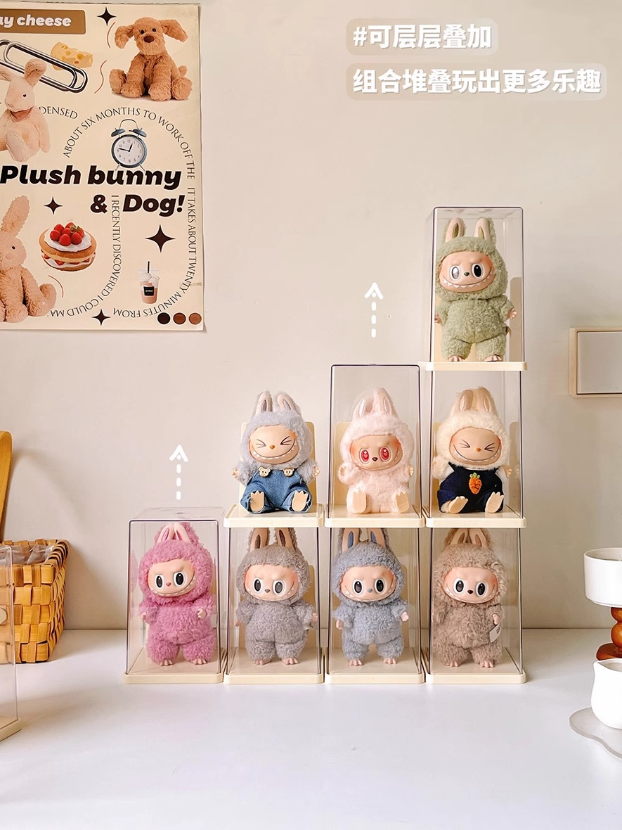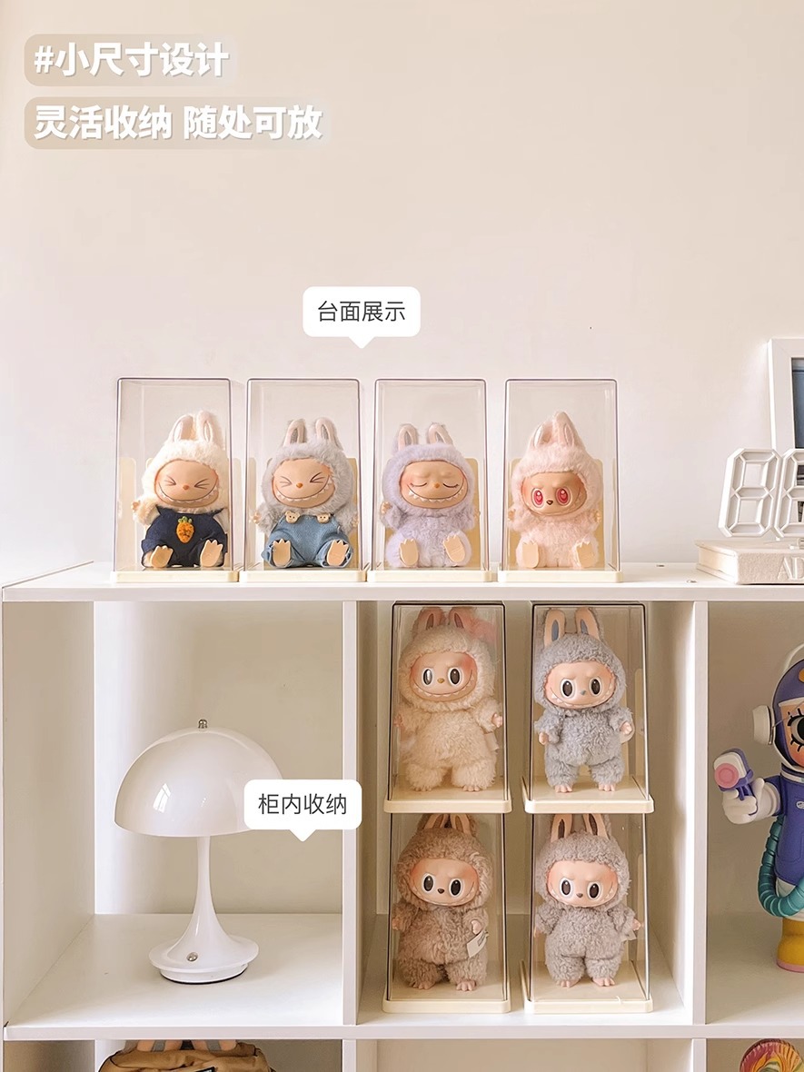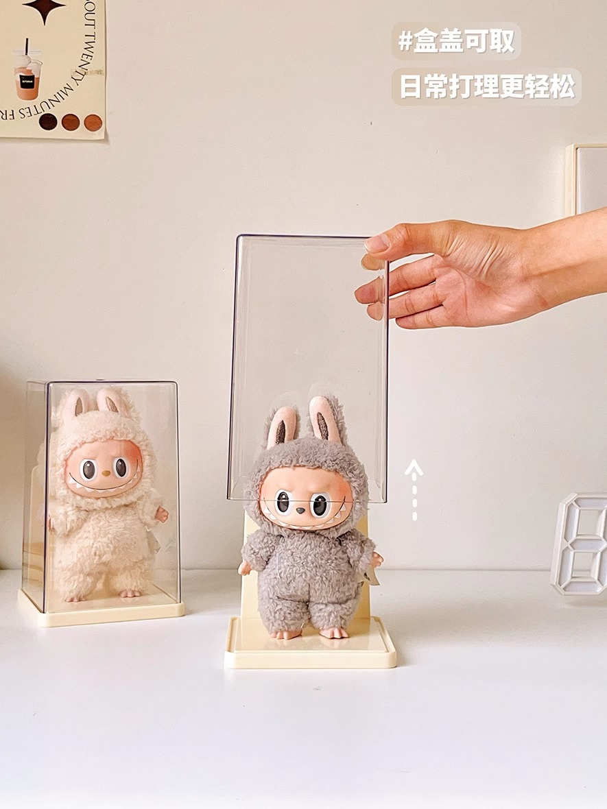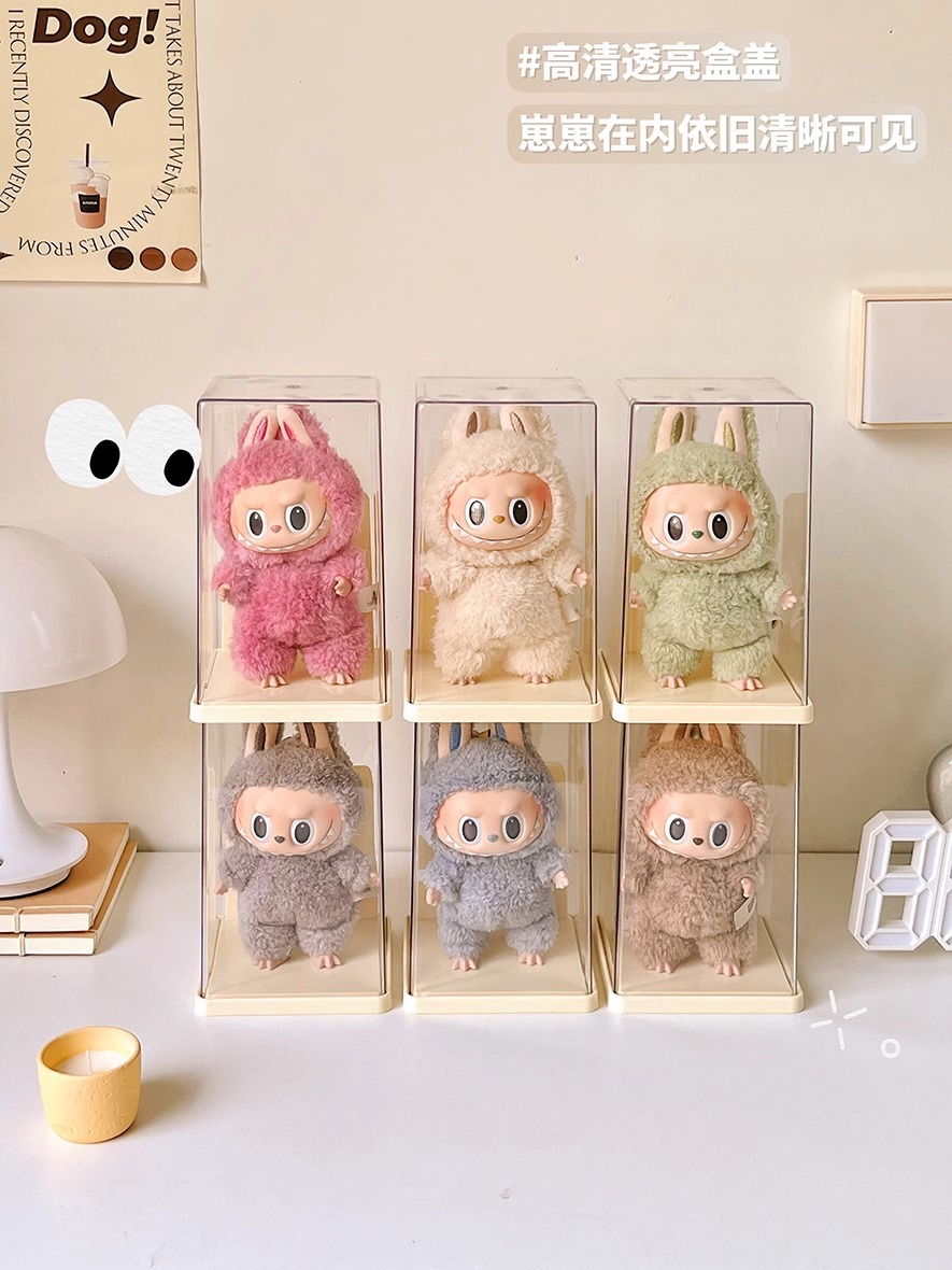 Labubu Seating Party 인형 먼지 커버는 Labubu 비닐 인형 버블 마트 상자 디스플레이 상자를 보호합니다.스토어 가기