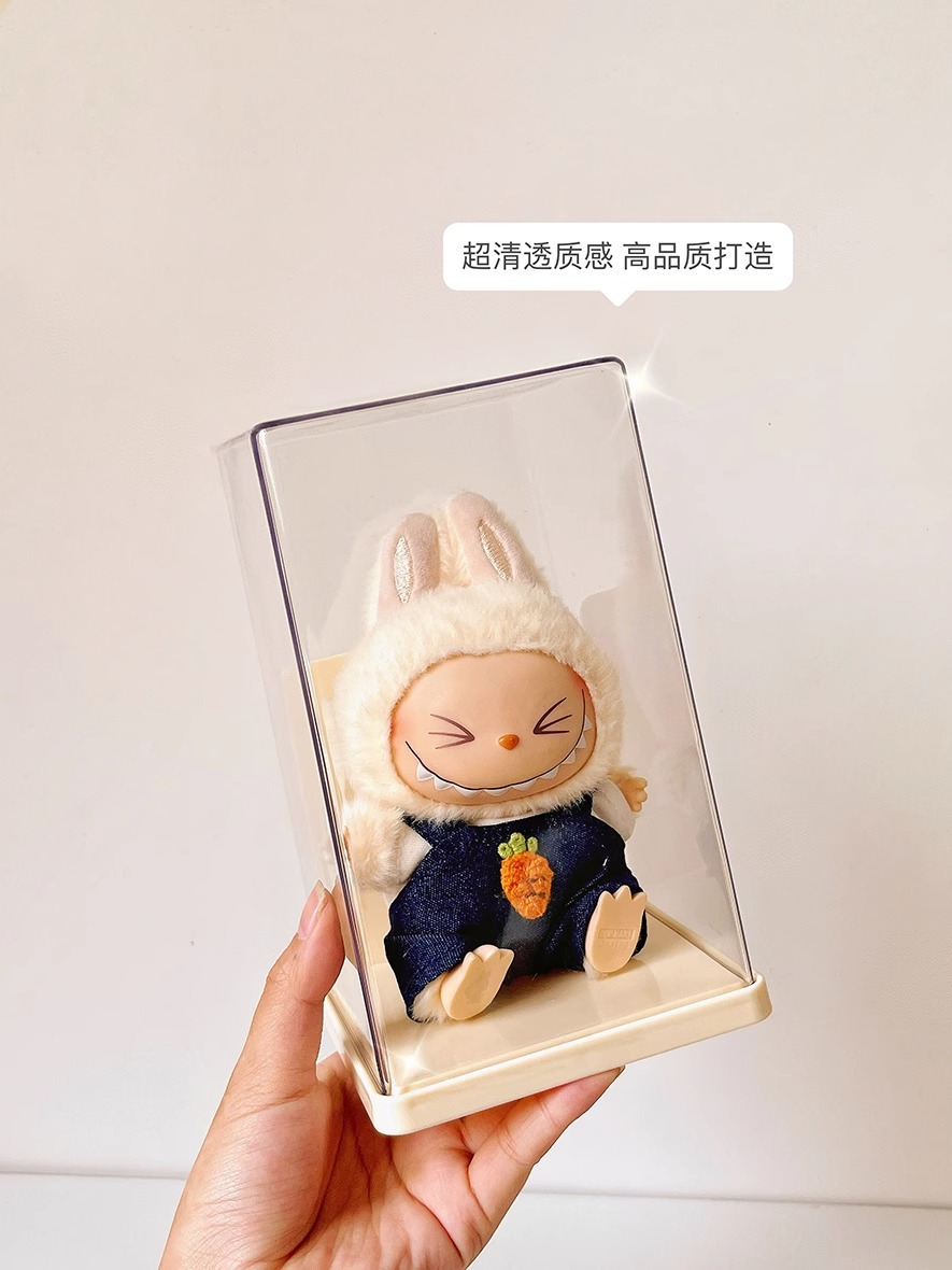 Labubu Seating Party 인형 먼지 커버는 Labubu 비닐 인형 버블 마트 상자 디스플레이 상자를 보호합니다.