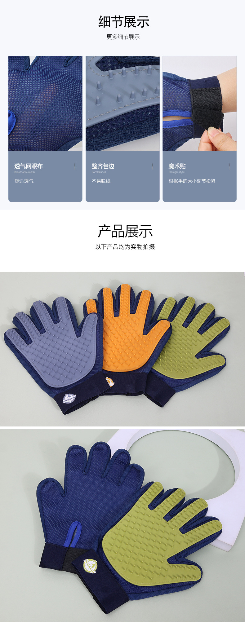 고양이와 개를 위한 국경 간 인기 판매 애완 동물 장갑, 특수 제모 빗, 마사지 브러시 장갑, 청소 및 미용 도구스토어 가기