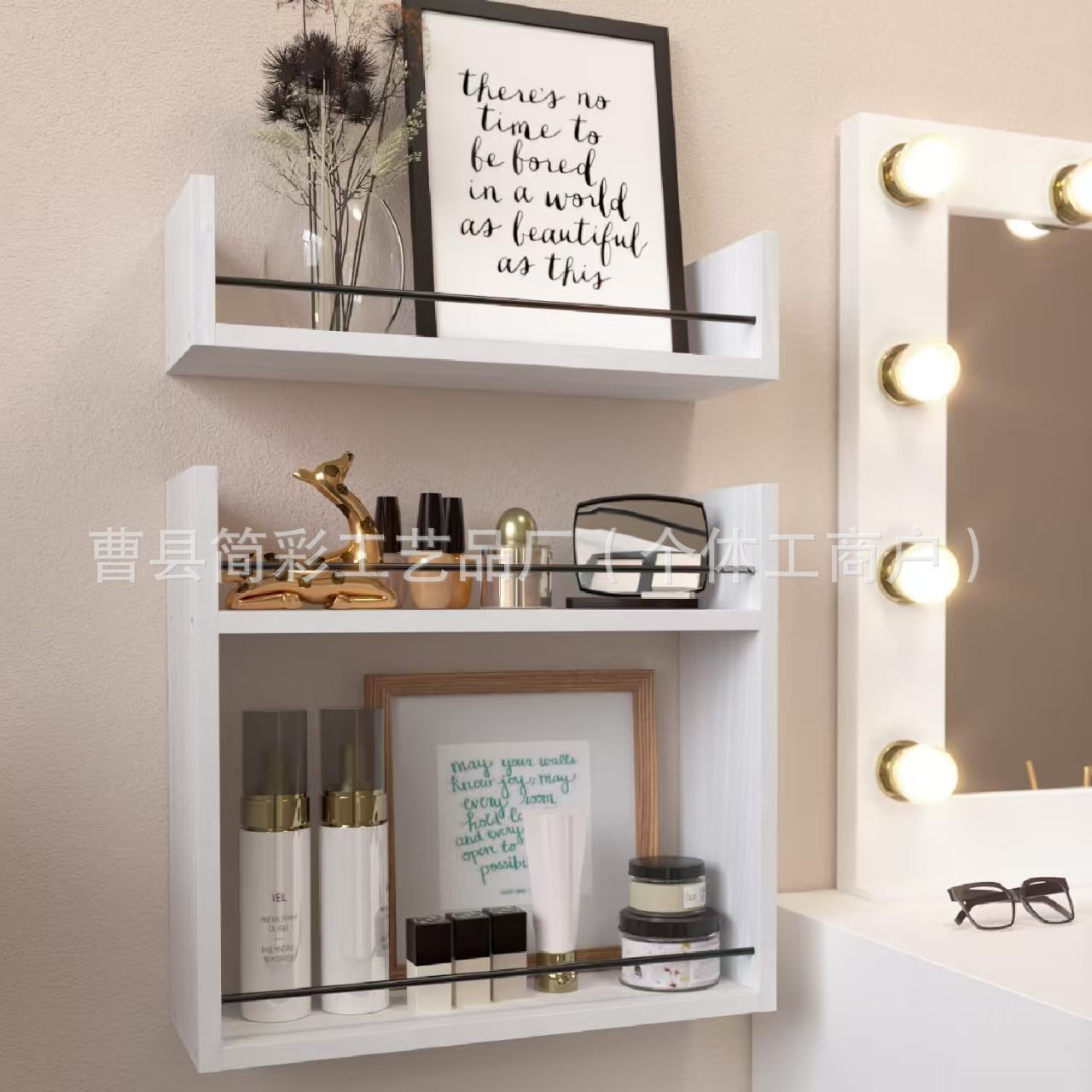 욕실 화장실 벽 나무 선반 선반 수납 선반 단단한 나무 화장품 정리 선반