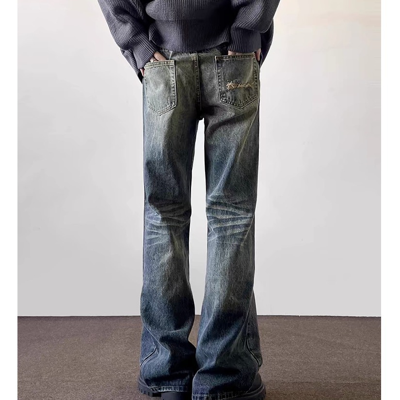 아메리칸 레트로 워싱 디스트레스드 청바지 남성 하이 스트리트 바이브 트렌디 스트레이트 레그 마이크로 플레어 슬리밍 클린핏 롱 팬츠스토어 가기