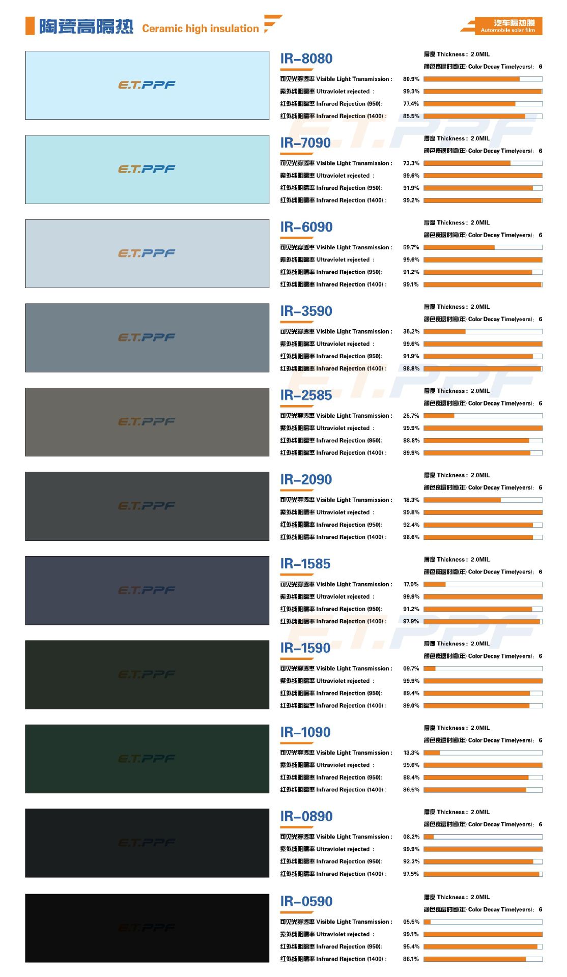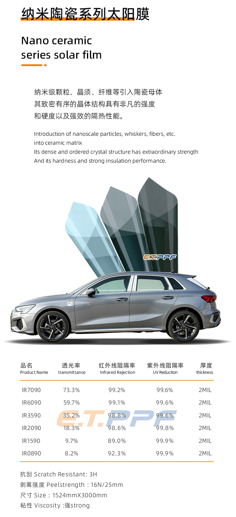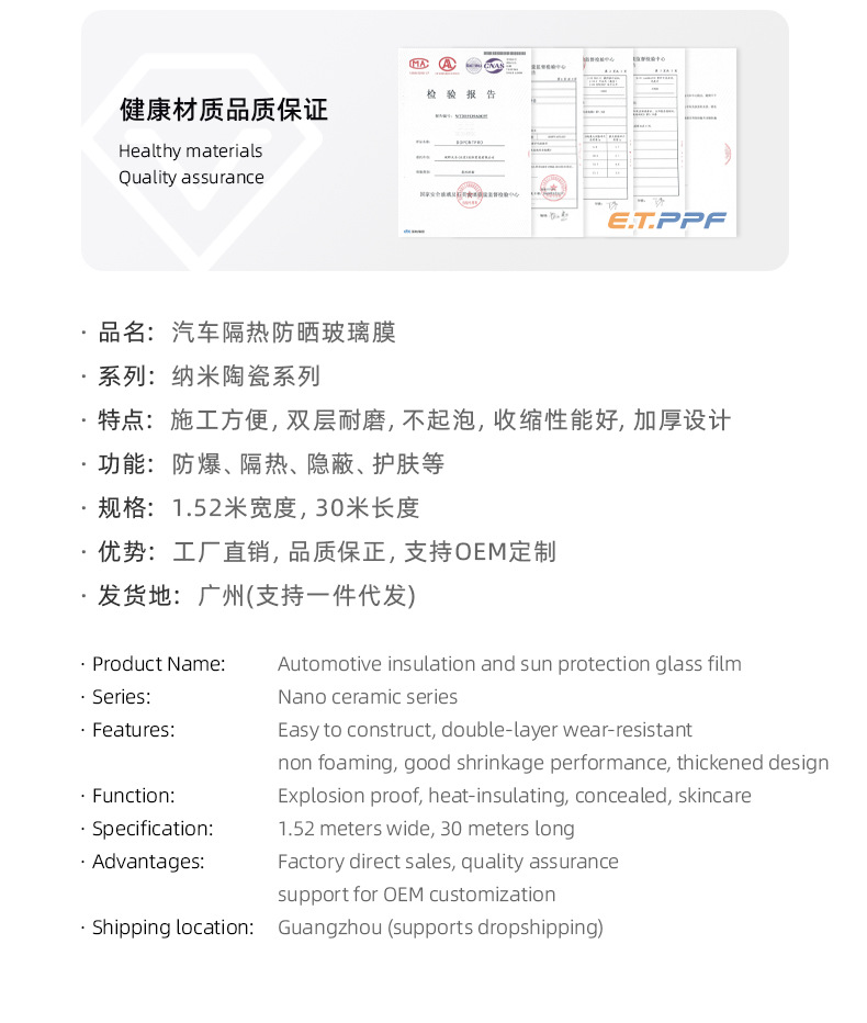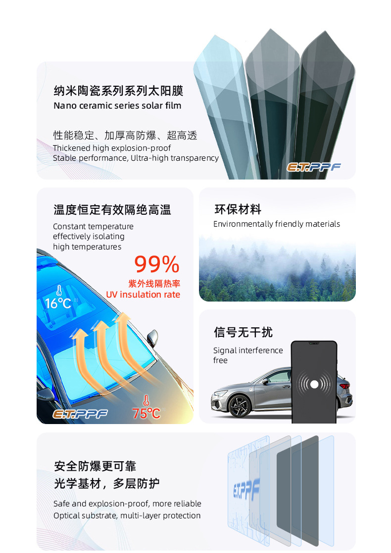 나노 세라믹 시리즈 자동차 썬팅 필름 고단열 필름 앞유리 측면 및 후면 필름 안전 방폭