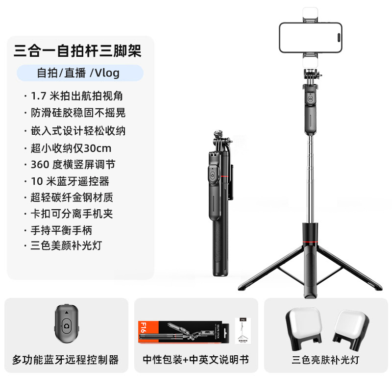 • [L16D+이중 조명] 알루미늄 합금 폴 + 밸런스 핸들 + 용골 지지대 + 360°회전 플랫폼